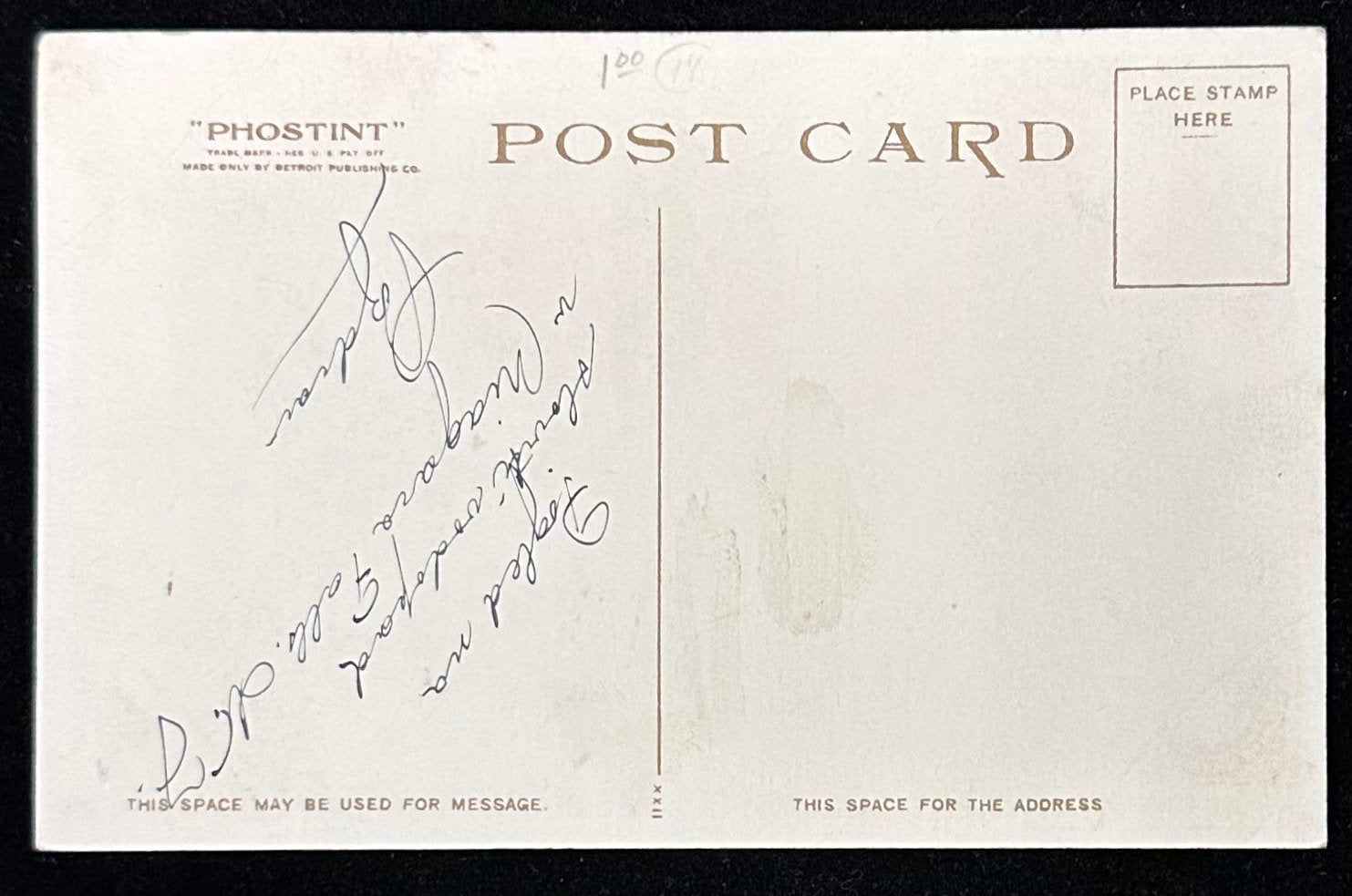 Condition: Good, soft edges, the bottom right corner is slightly bent and some slight aging is present on the back of the postcard