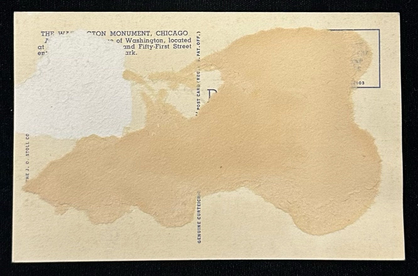 Unmailed: has glue residue on the back as well as some excess paper because it was a part of scrapbook collection