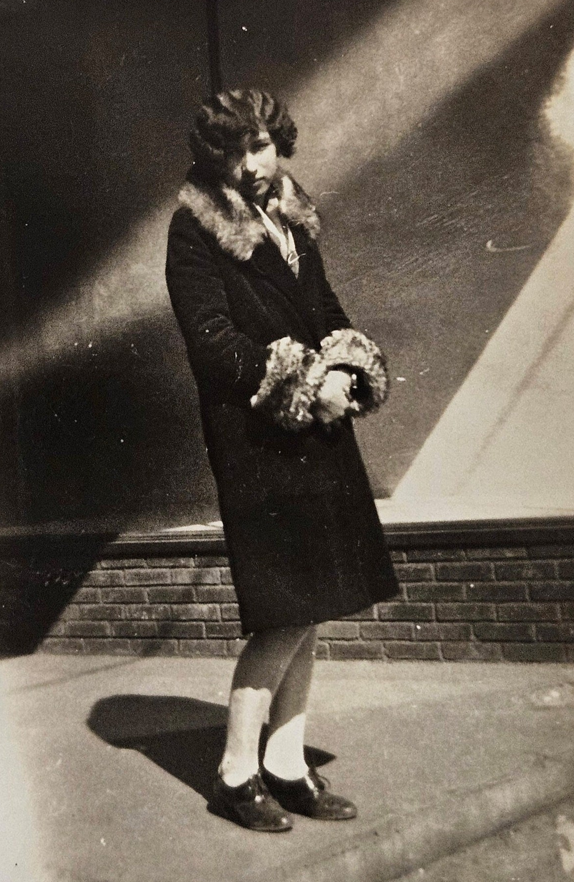 RPPC - 1928 Young Girl "Anna" - Fashionable Fur trimmed Coat - Short Wavy Hairstyle -Childlike Innocence - Time between WWI and WWII
