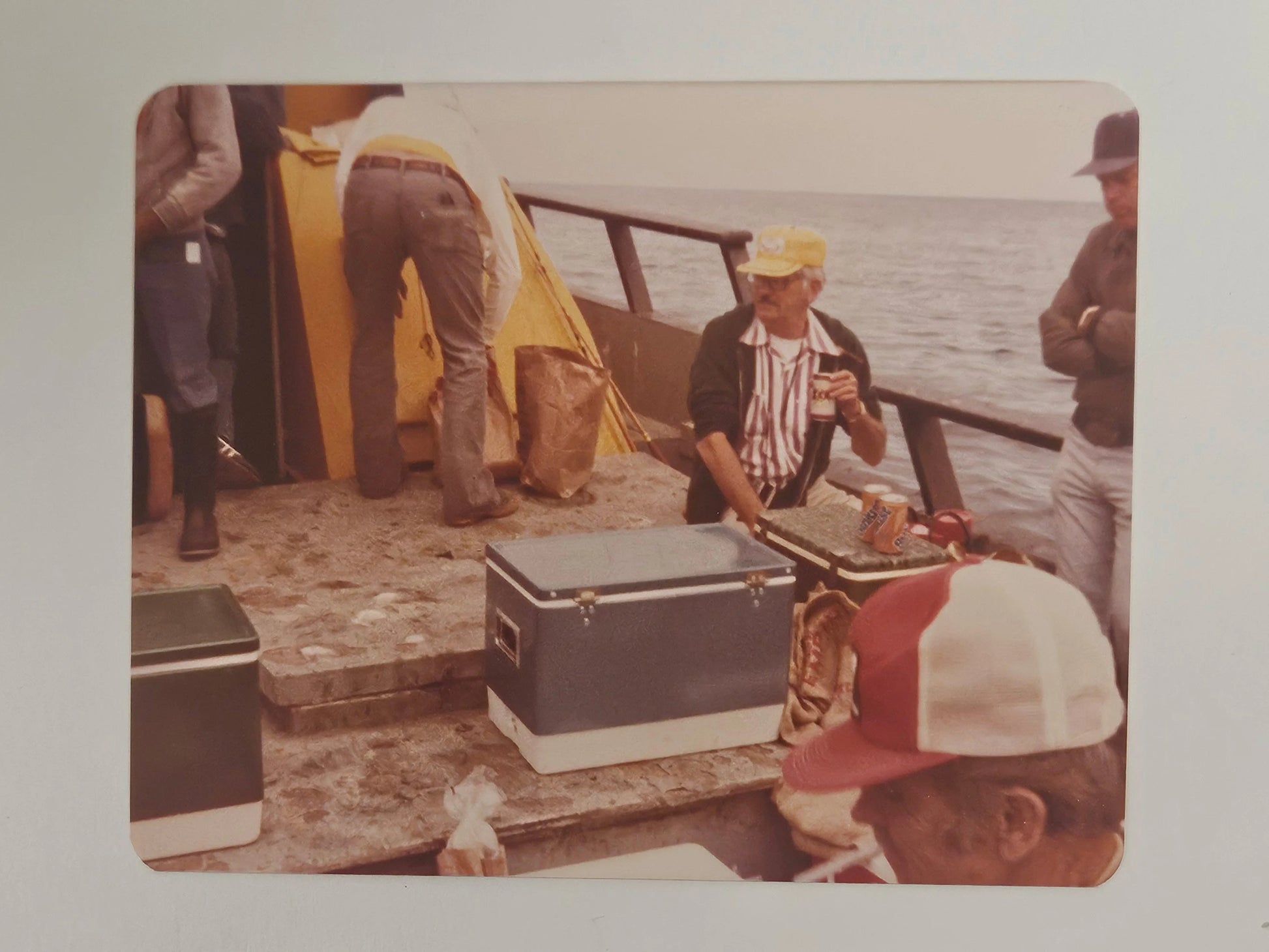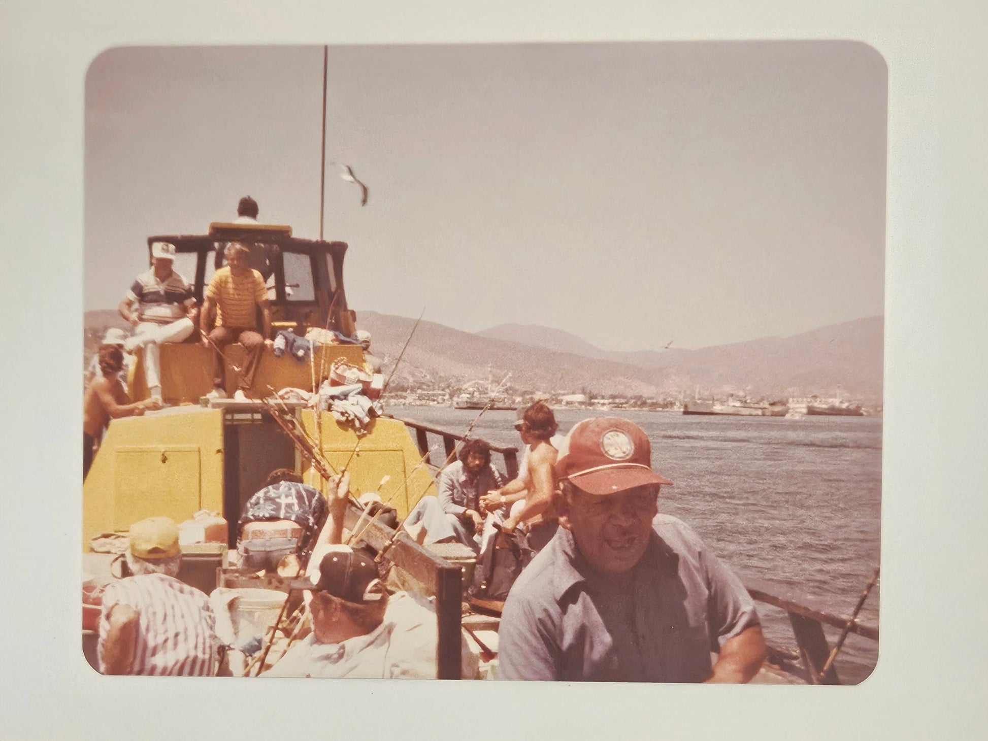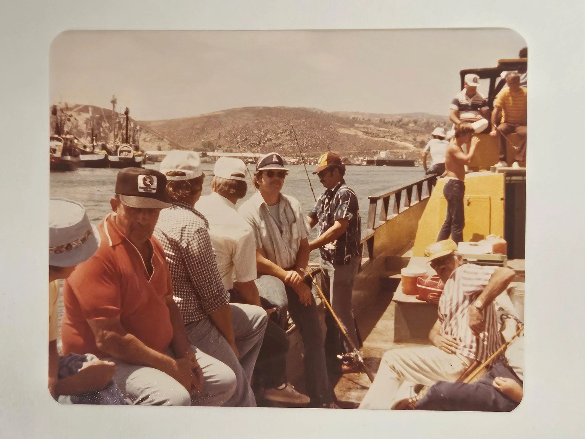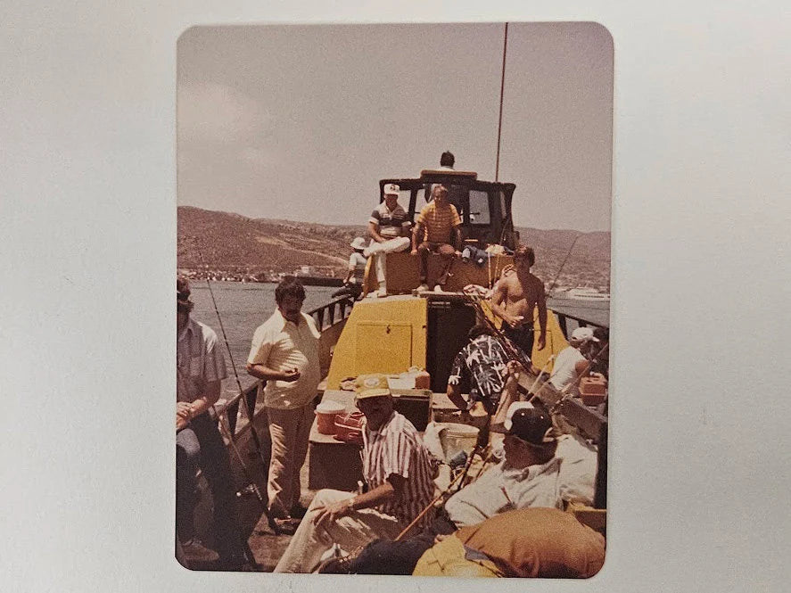 4 Kodak Color Photos of 3 friends on a 1979 fishing trip in Southern California. This was a favorite vacation past time for men of means, after WWII. It provided sunshine, high seas, comradery, and some wholesome competition...plus, a great memory to hold when all was done. The photos are sold together as set.