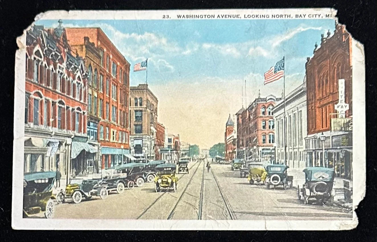 23 Washington Avenue, looking North, Bay City, Michigan - Vintage 1920s Postcard