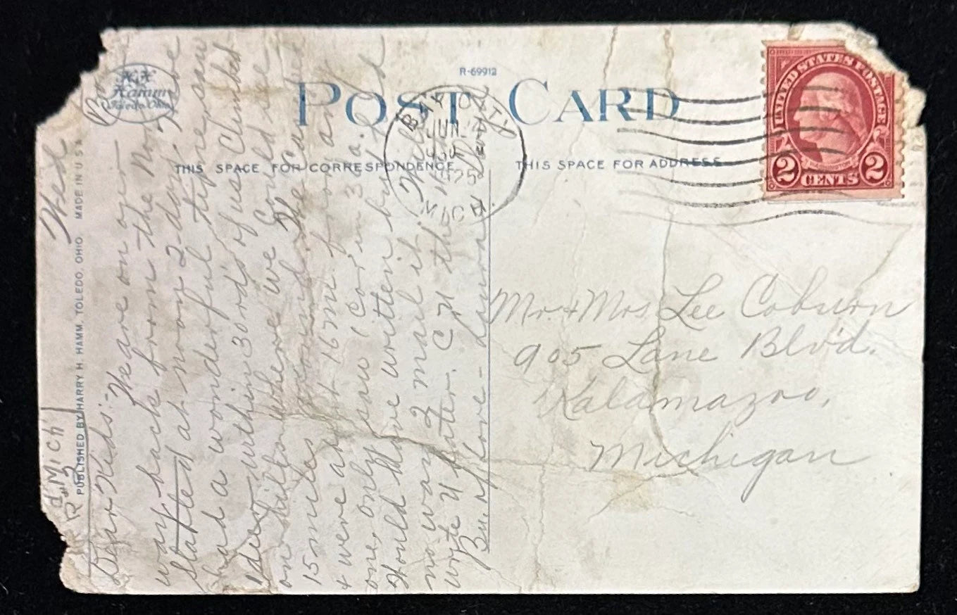 Mailed: Posted on June 24th, 1925 from Bay City, Michigan with a Carmine 2 cent George Washington stamp
