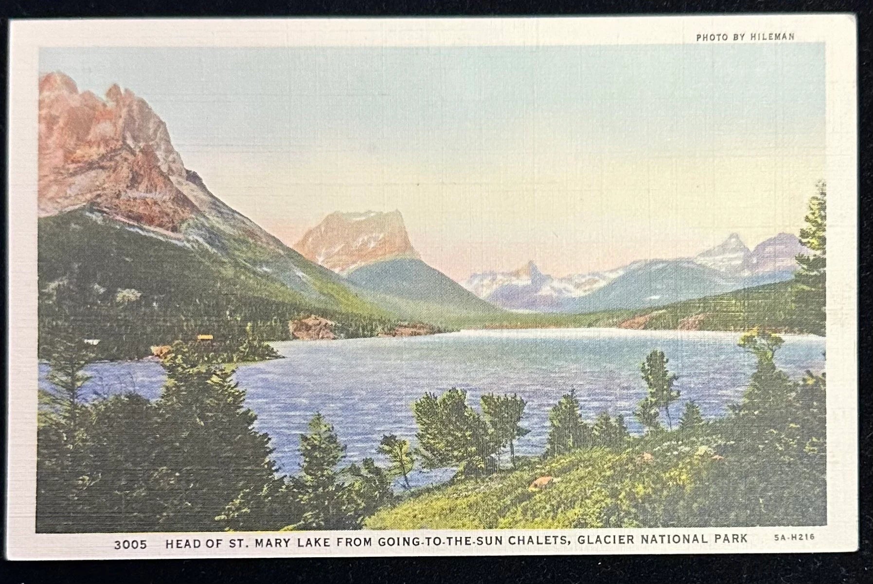 3005 Head of St. Mary Lake from Going to the Sun Chalets, Glacier National Park - Linen Vintage Postcard
