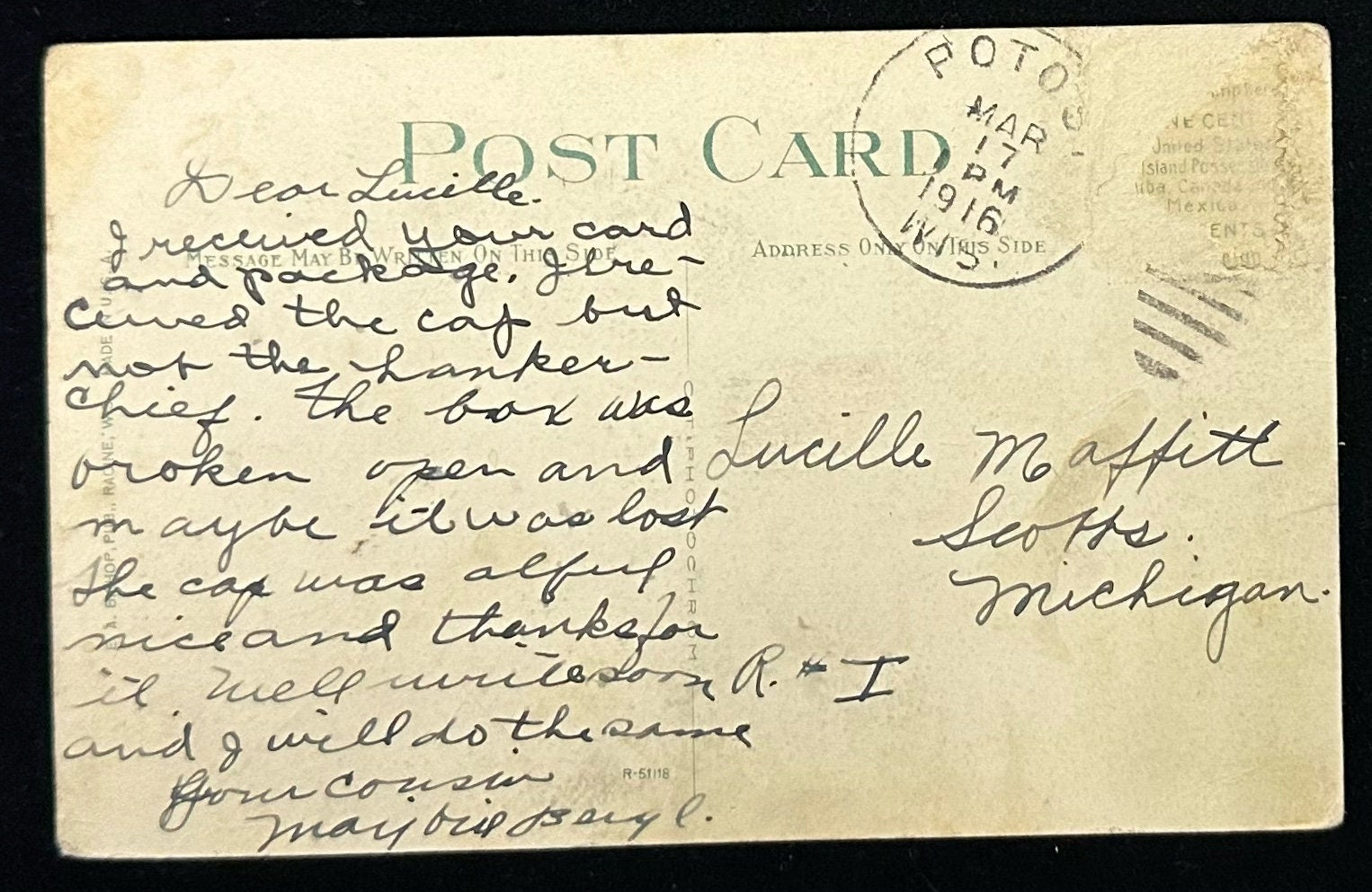 Mailed: Posted on March 17th, 1916 from Wisconsin, the stamp is missing