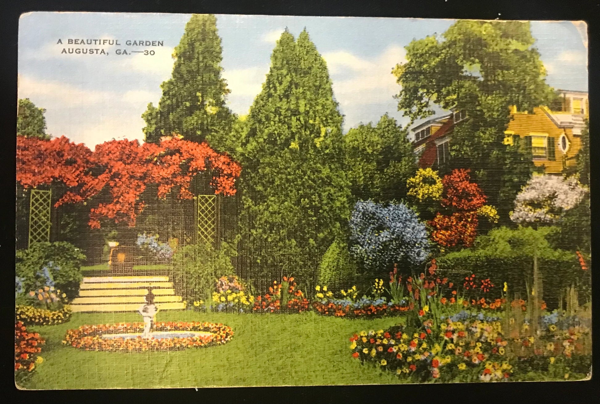 A Beautiful Garden - Augusta, Georgia - 1949 Linen Postcard