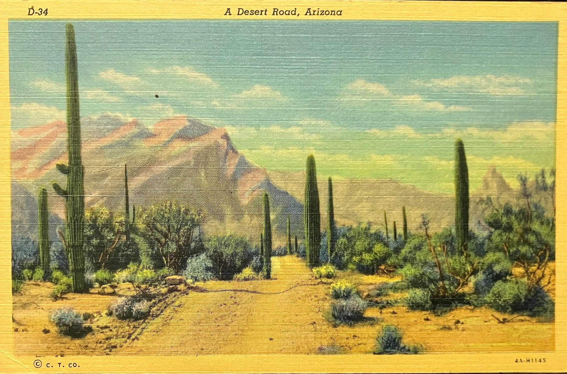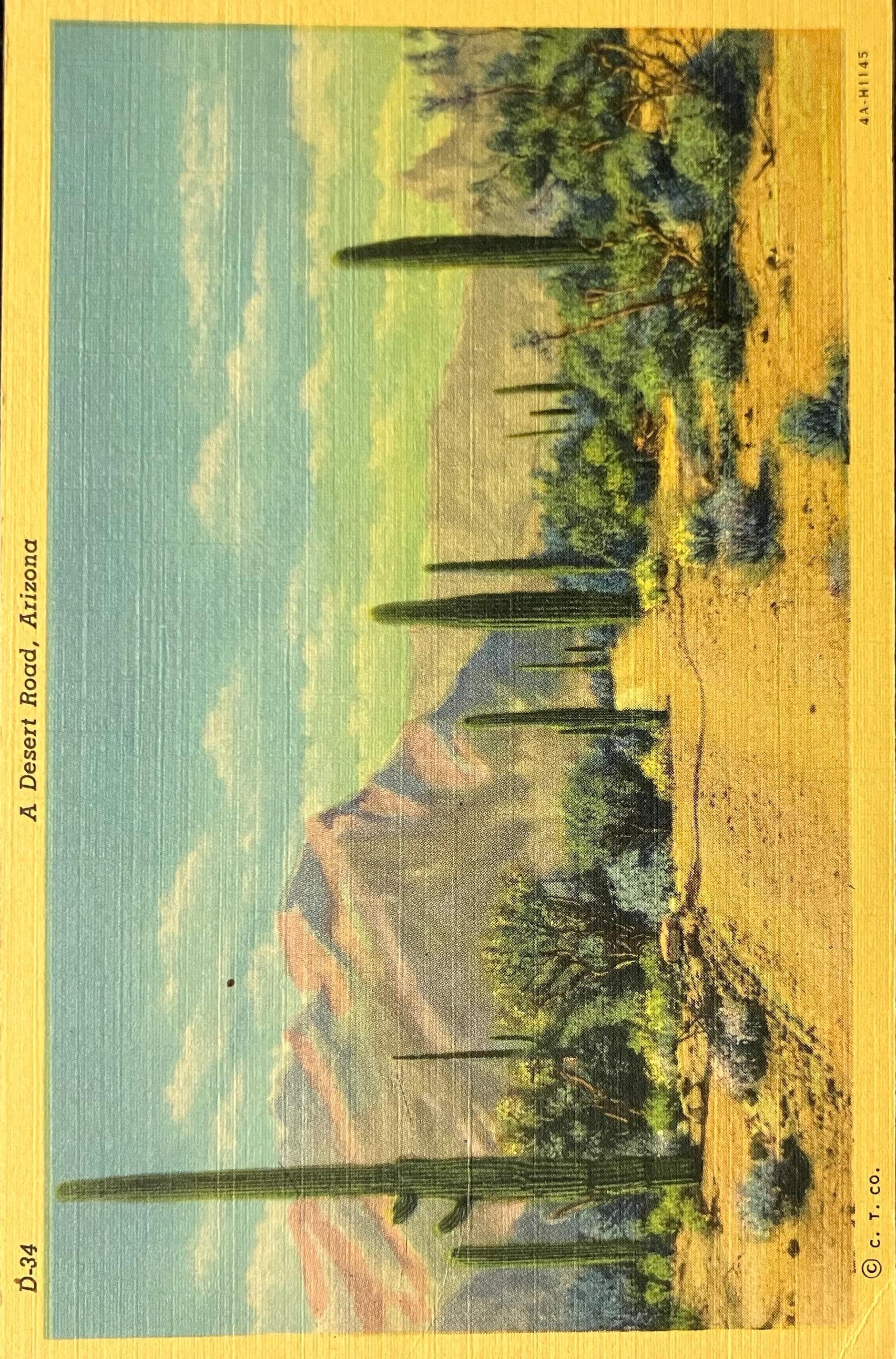 A Desert Road, Arizona - Copyright C. T. Co. - 1940s Linen Postcard