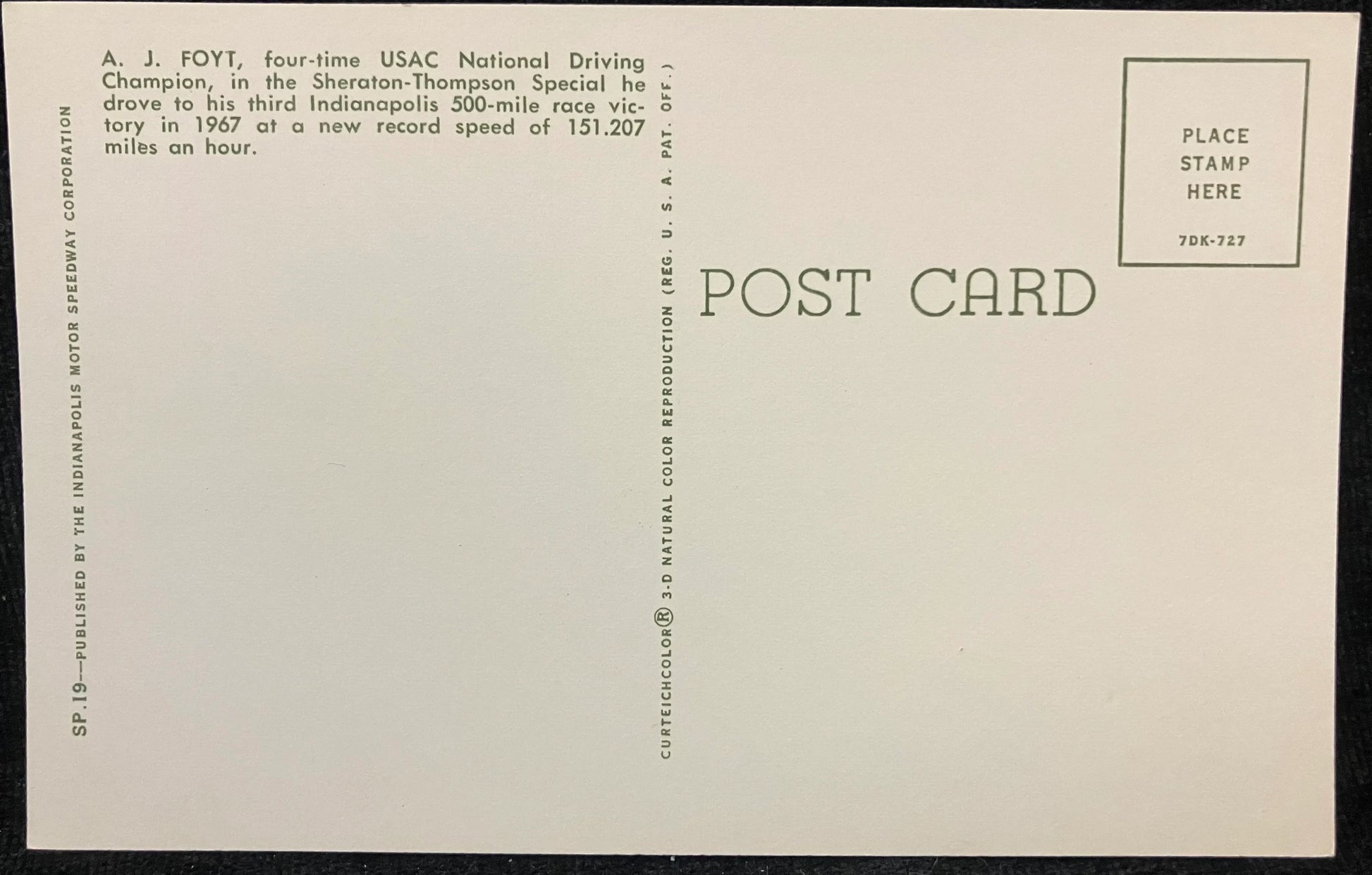 A. J. FOYT in the Sheraton-Thompson Special - Indiana - Vintage Race Car Postcard