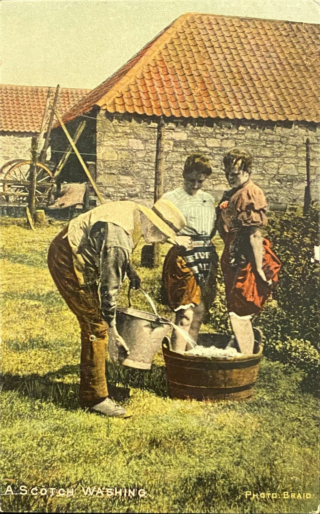 A Scotch Washing - Photo by Braid - Satirical 1900s Vintage Postcard
