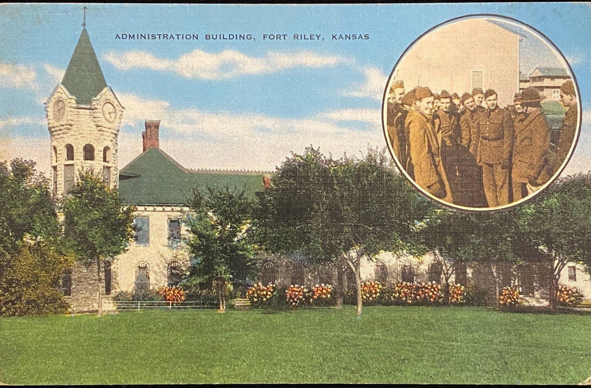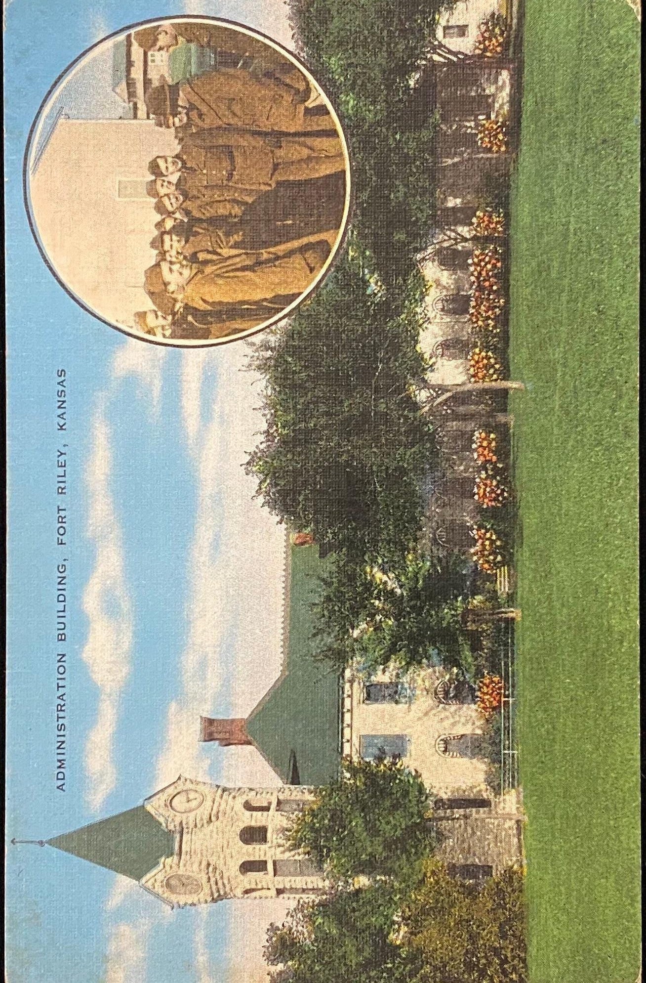 Administration Building - Fort Riley, Kansas - 1940s Linen Postcard