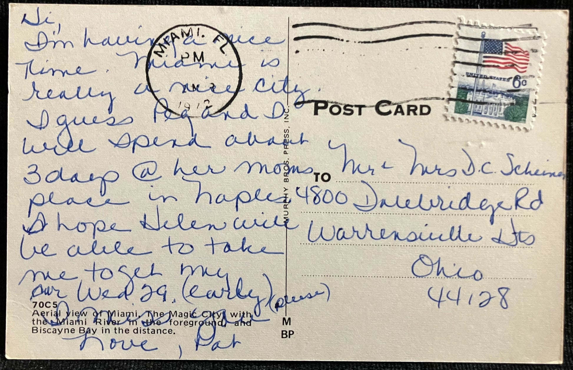 Mailed: Postmark 1972 Miami, FL. a six-cent United States stamp