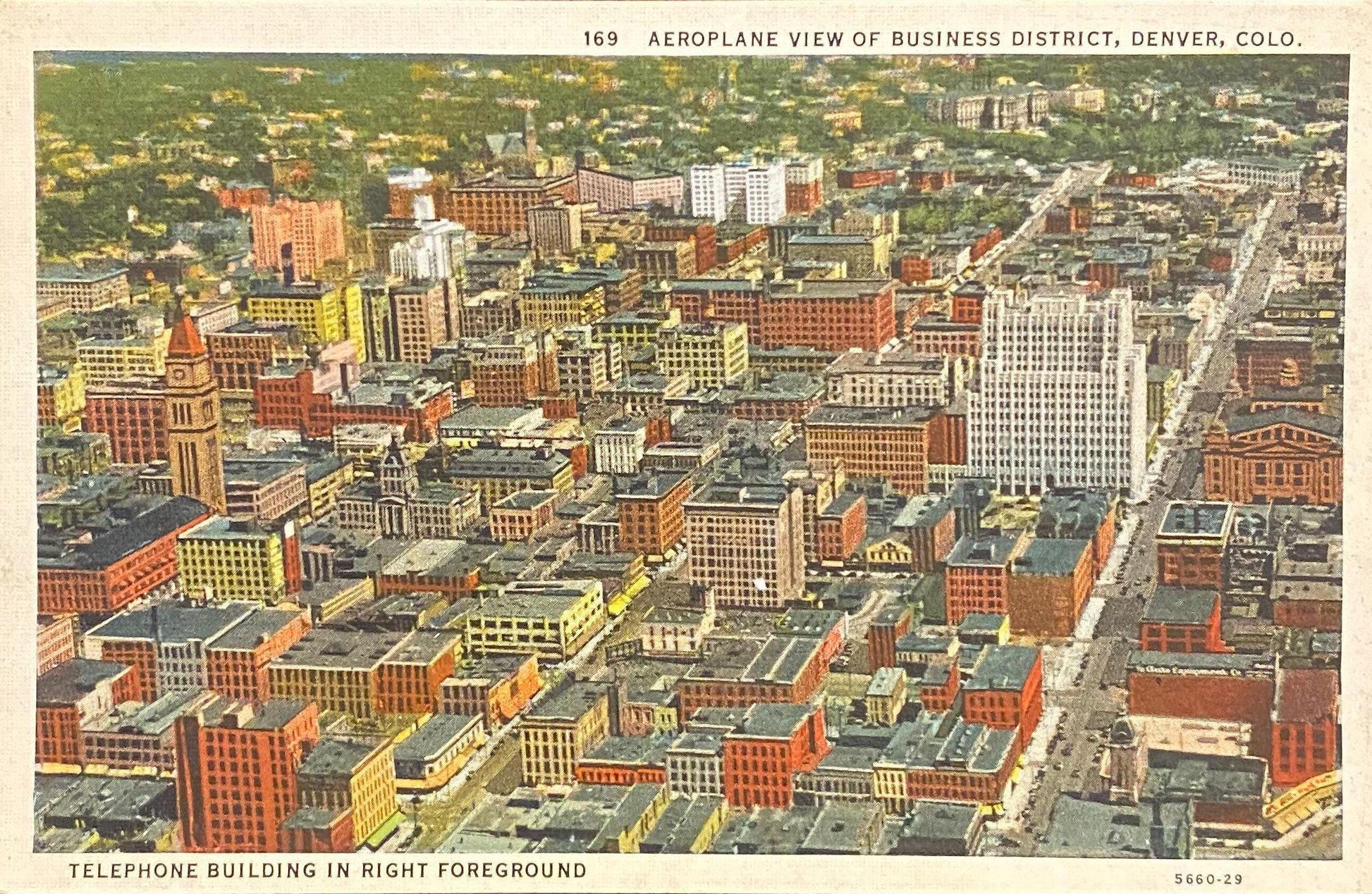 Front: Aeroplane View of Business District, Denver, Colo. - Vintage Postcard