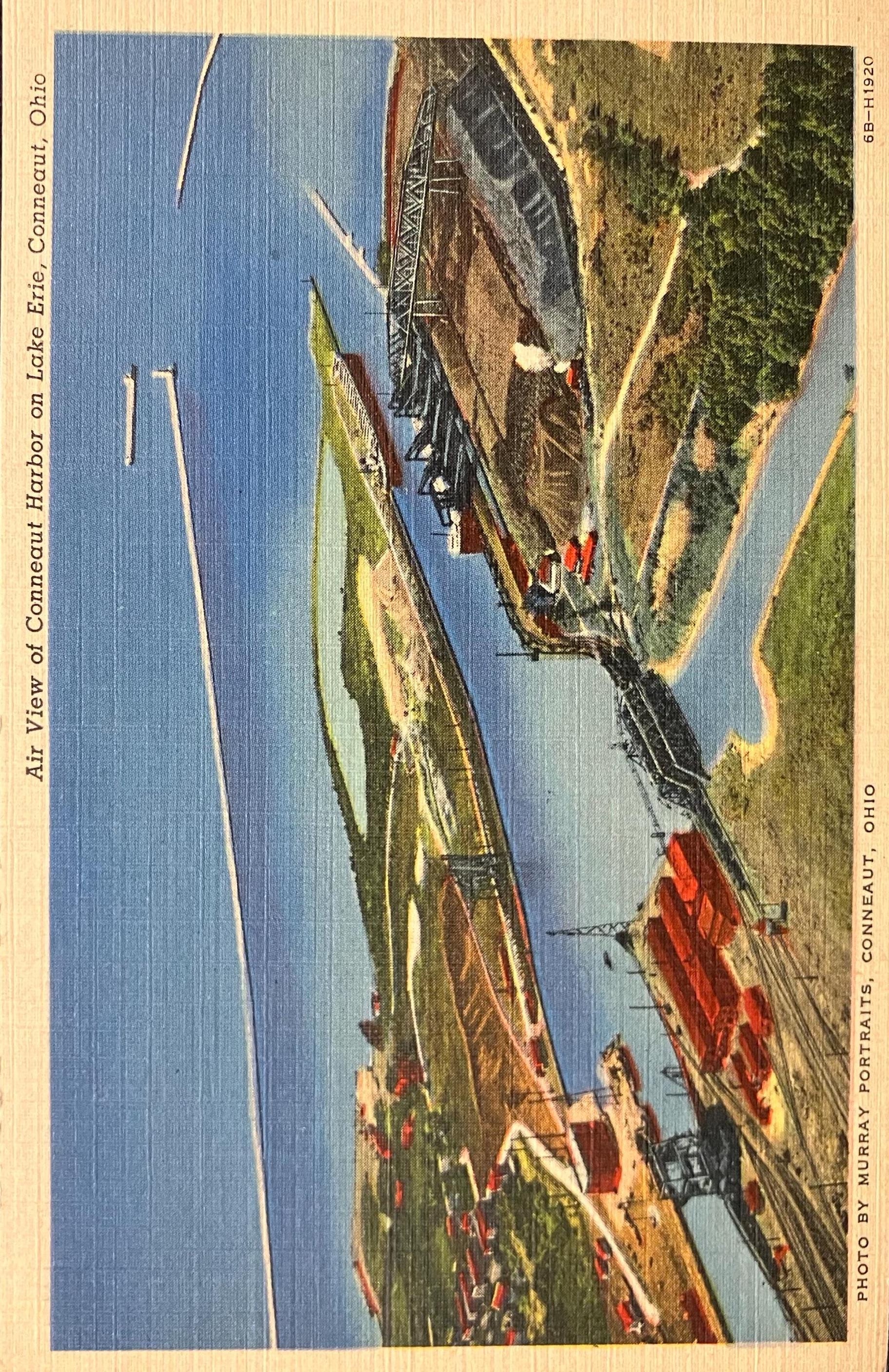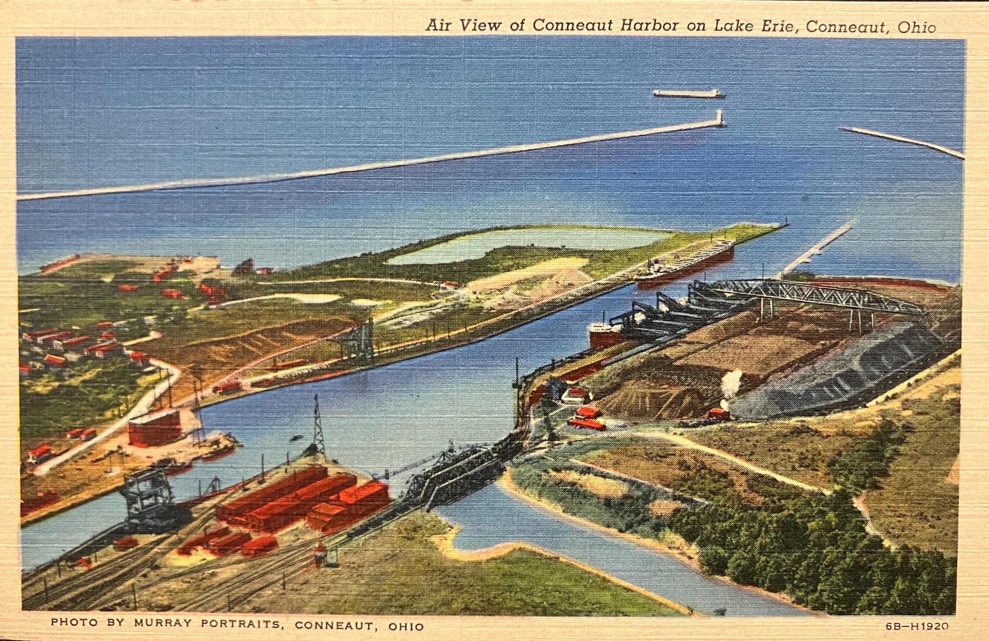 Air View of Conneaut Harbor on Lake Eire Conneaut, Ohio - Photo by Murray Portraits, Conneaut, Ohio - Linen Lake Postcard