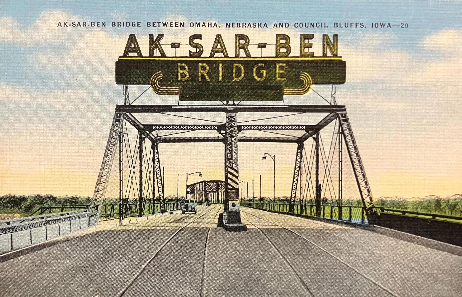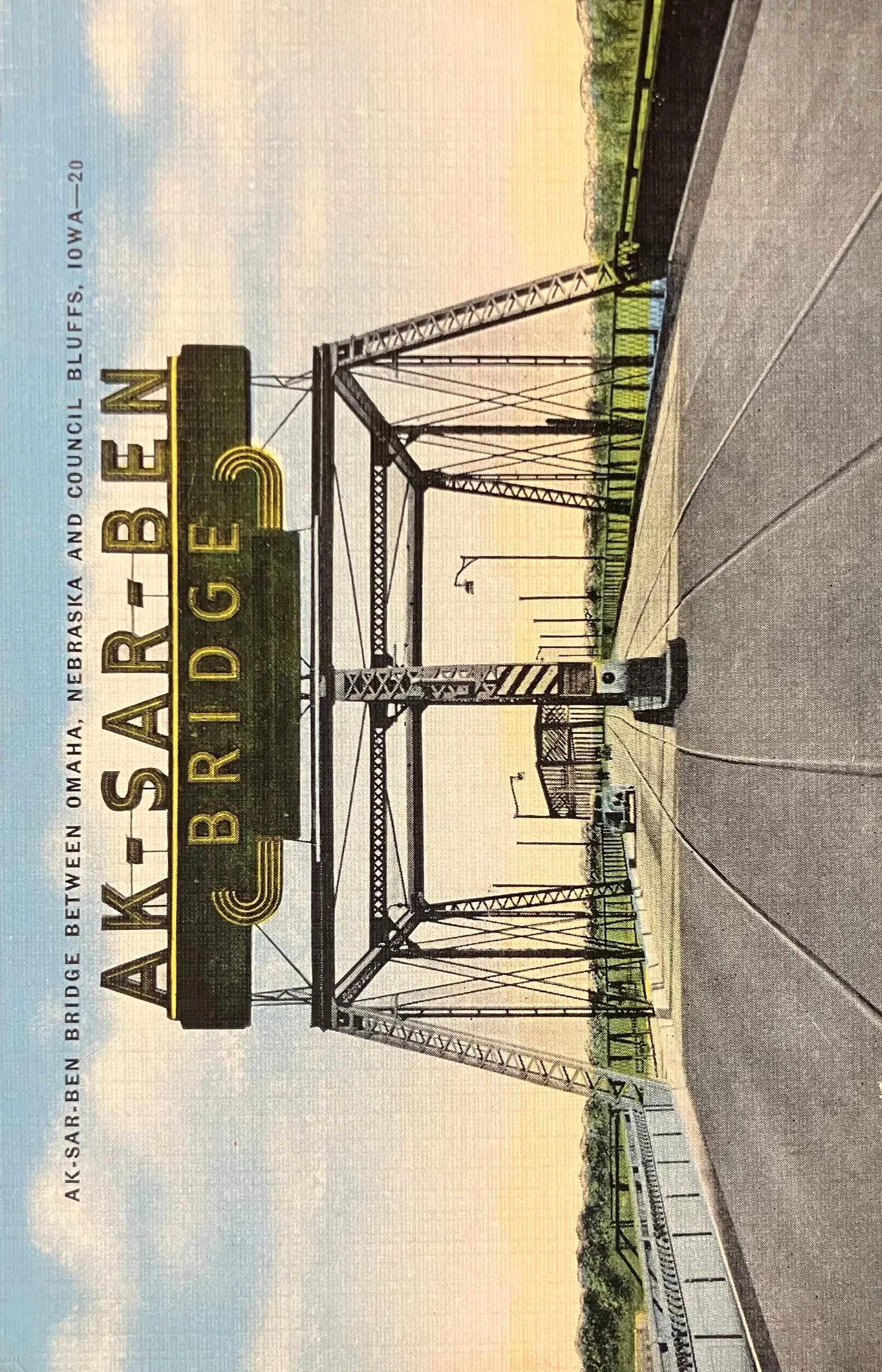 On front: Ak-Sar-Ben Bridge Between Omaha, Nebraska and Council Bluffs, Iowa