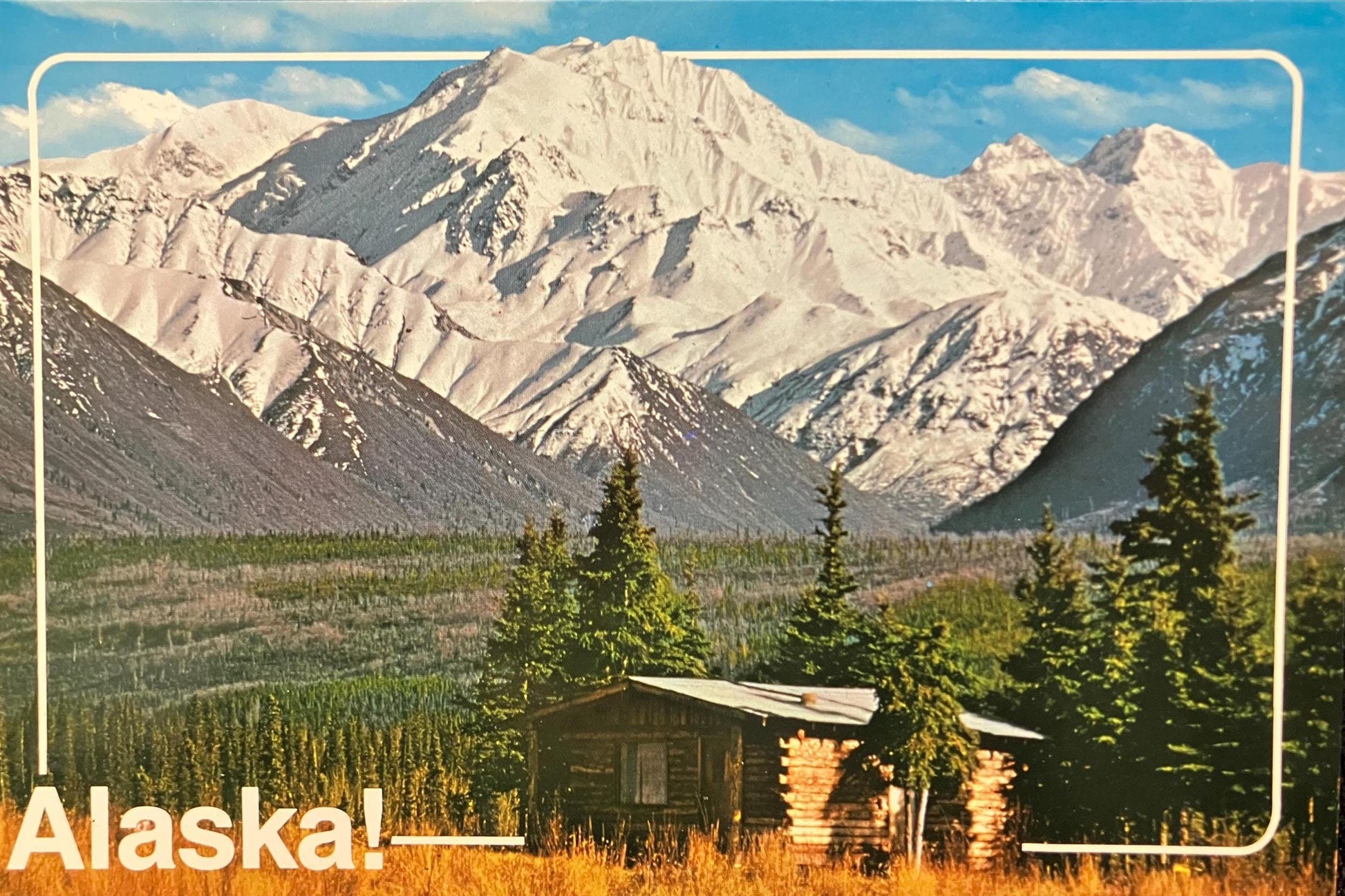Alaska! - Cabin in the Mountains - Vintage Postcard