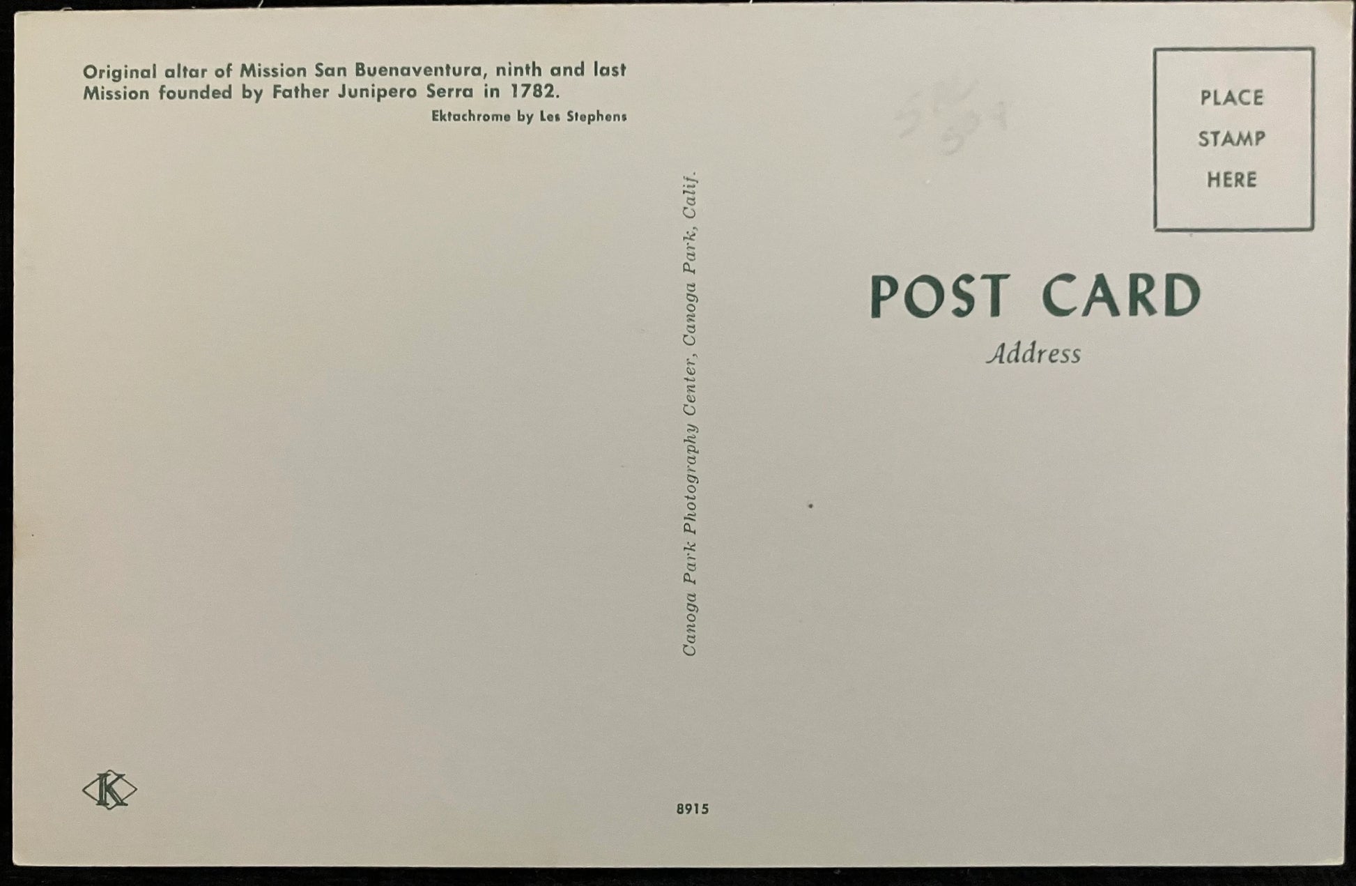 Altar of Mission San Buenaventura - California - Ektachrome: Les Stephens - Vintage Church Postcard