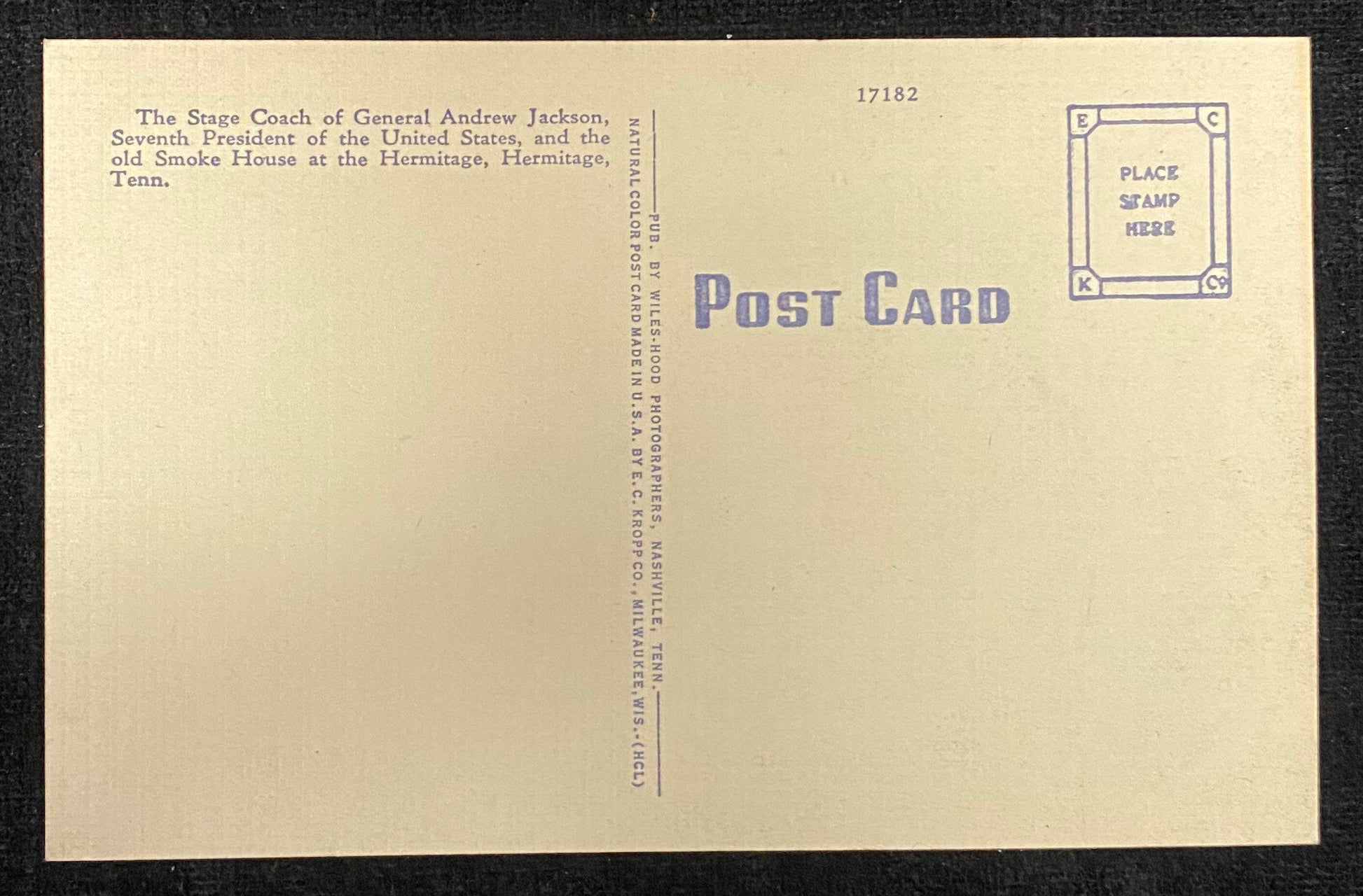 Andrew Jackson's Stagecoach - Nashville, Tennessee - 1940s Linen Postcard