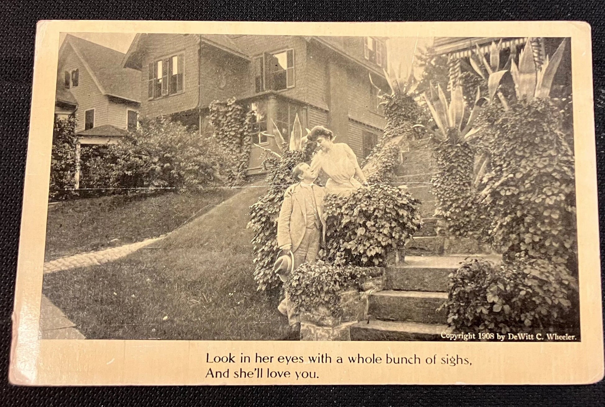 On front of card: “Look in her eyes with a bunch of sighs, And she’ll love you.”
