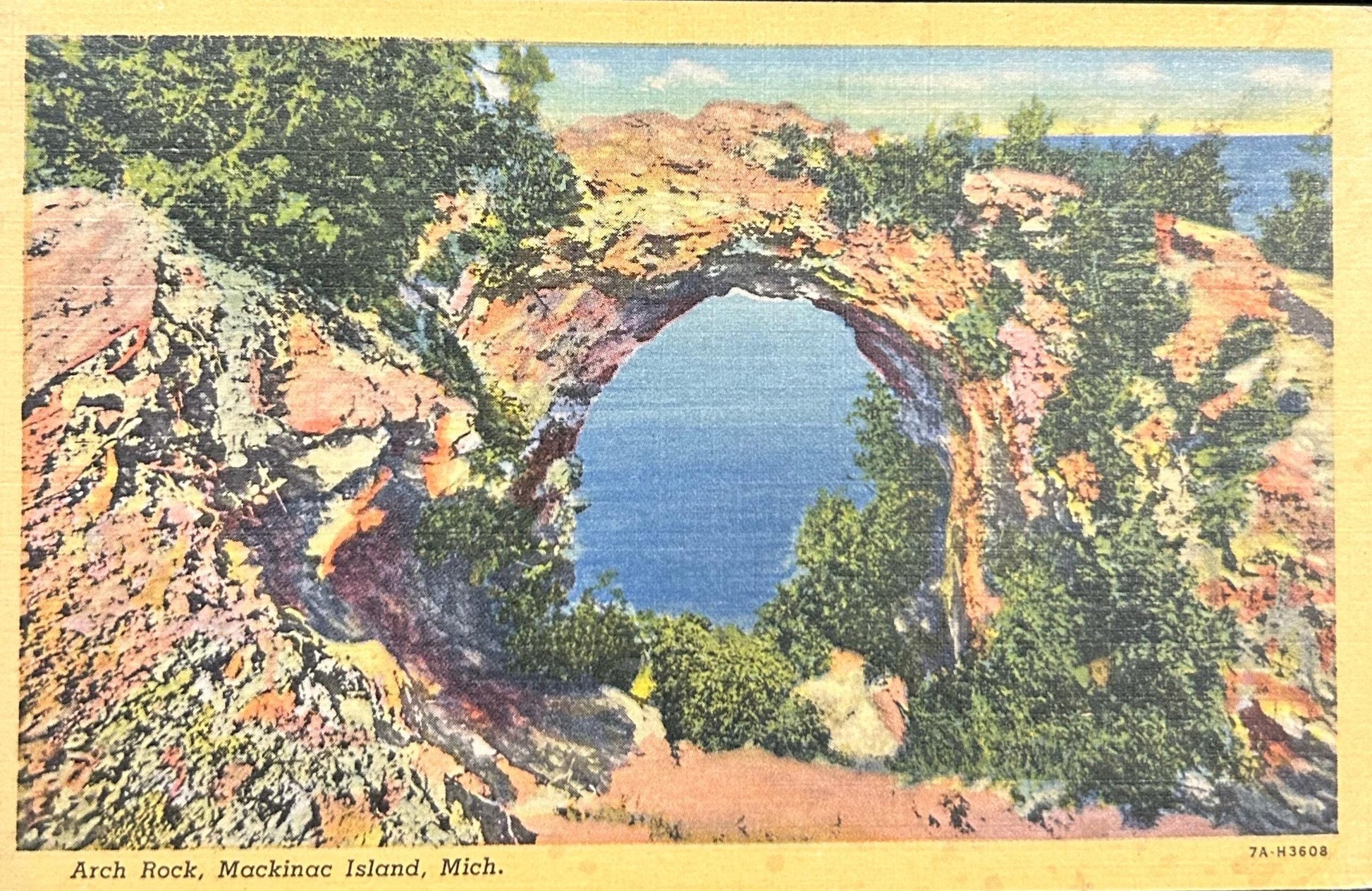 Arch Rock, Mackinac Island, Michigan - Linen Postcard