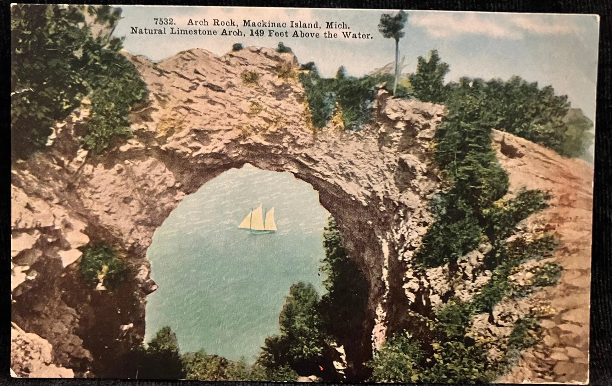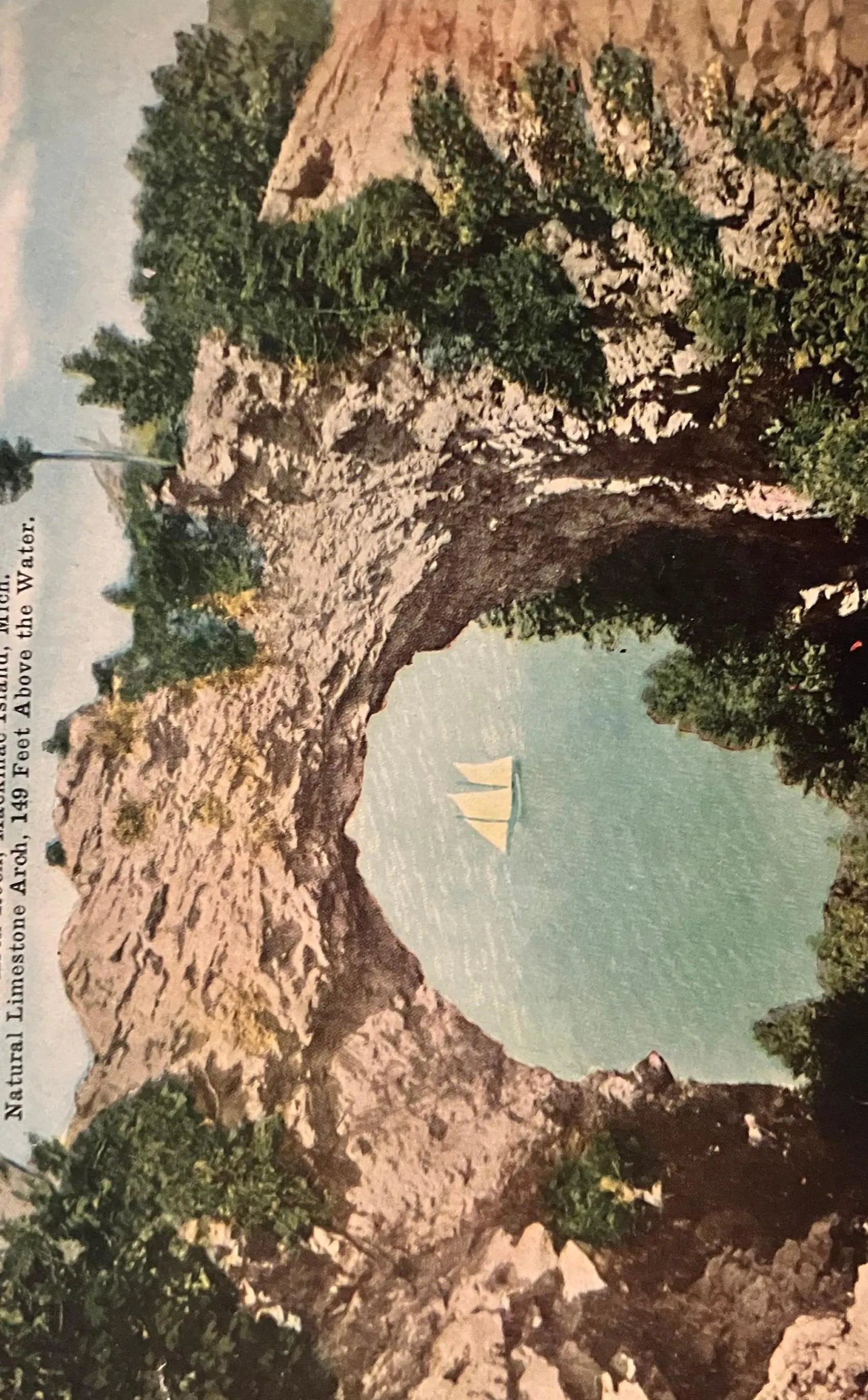 Front: Arch Rock, Mackinac Island, Mich. Natural Limestone Arch, 149 Feet Above the Water.