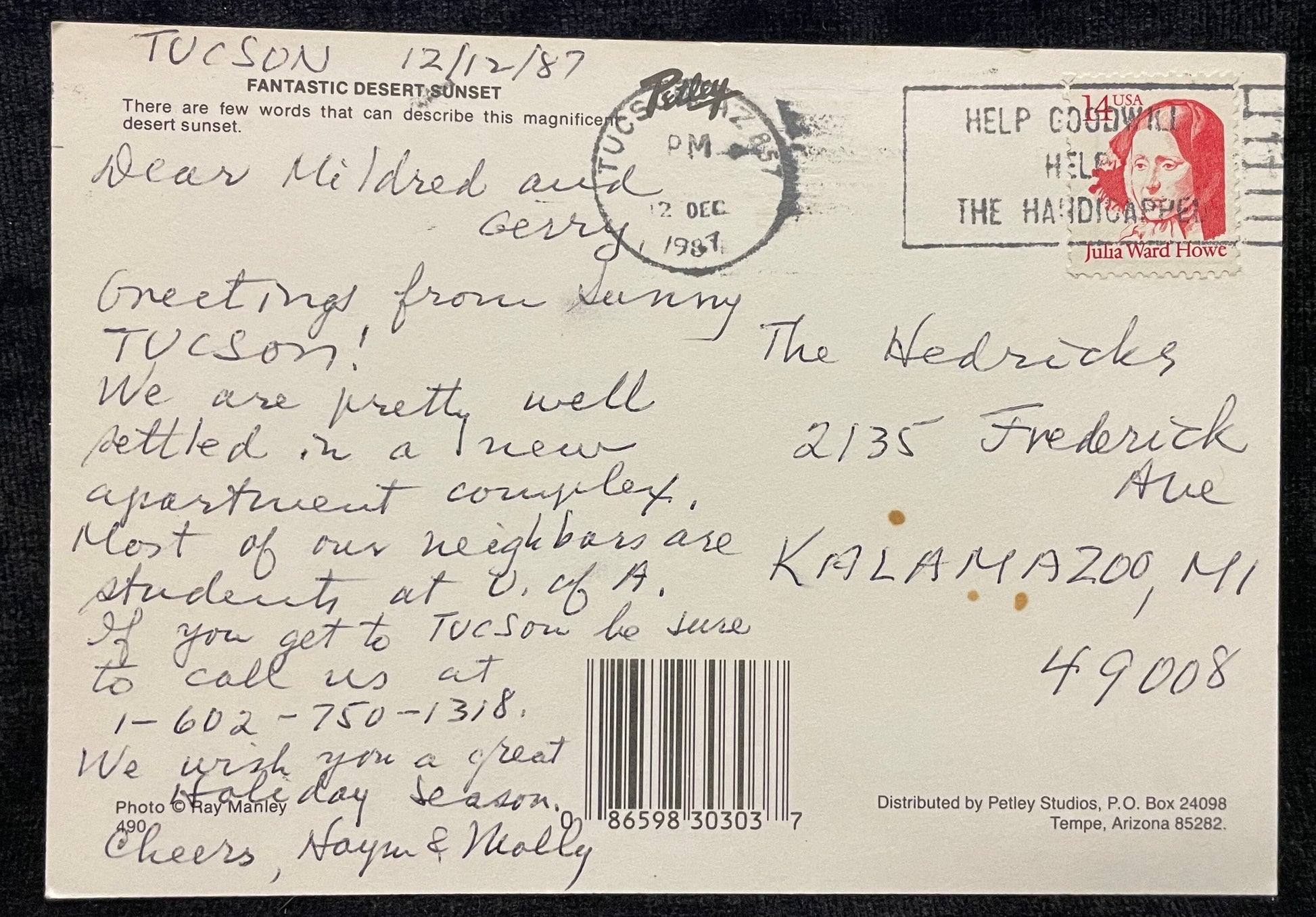Mailed. Posted on Dec 12 1987. Julia Ward Howe Stamp
