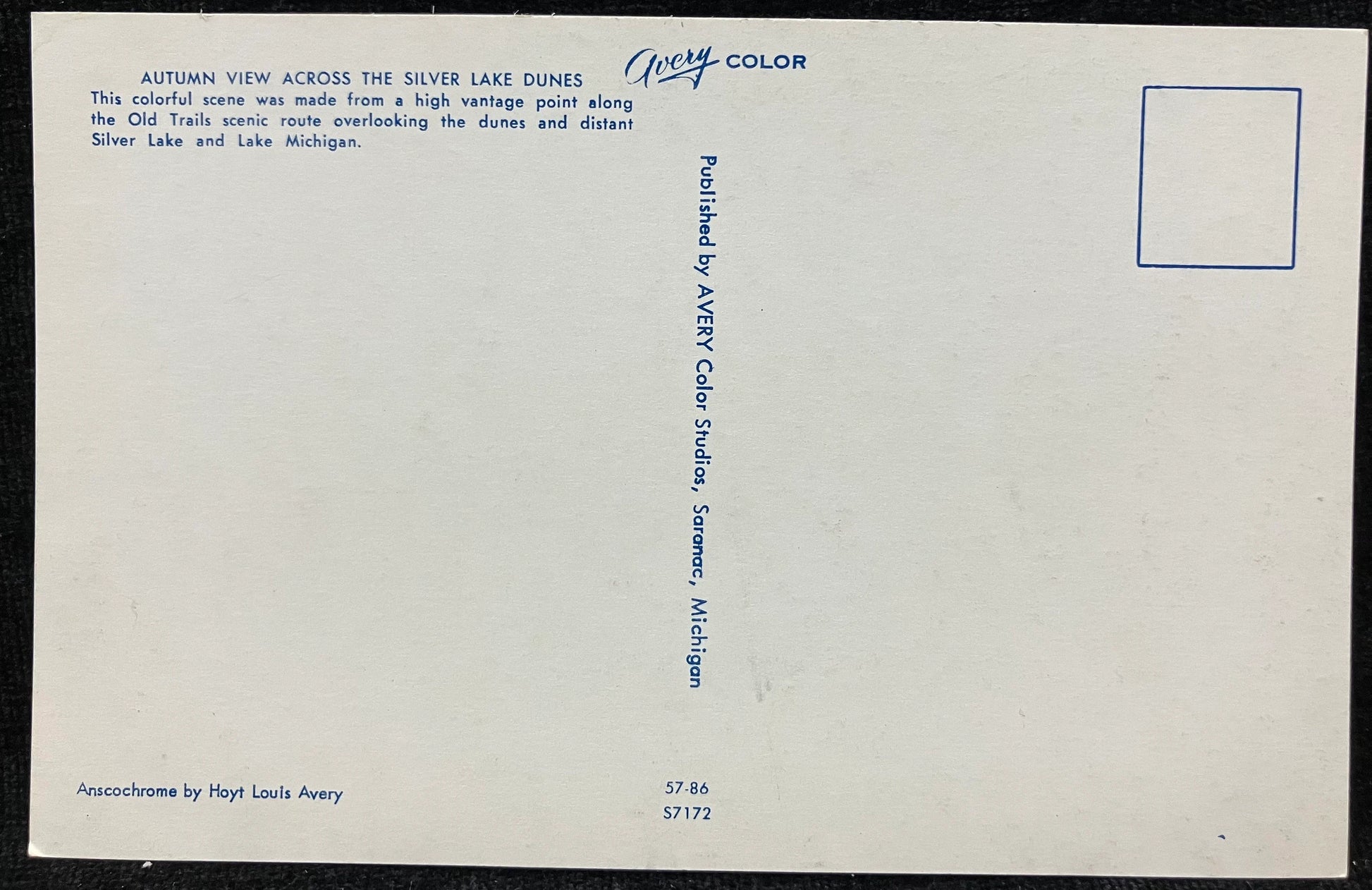 Autumn View across Silver Lake Dunes, Michigan - Anscochrome: Hoyt Louis Avery - Vintage Postcard