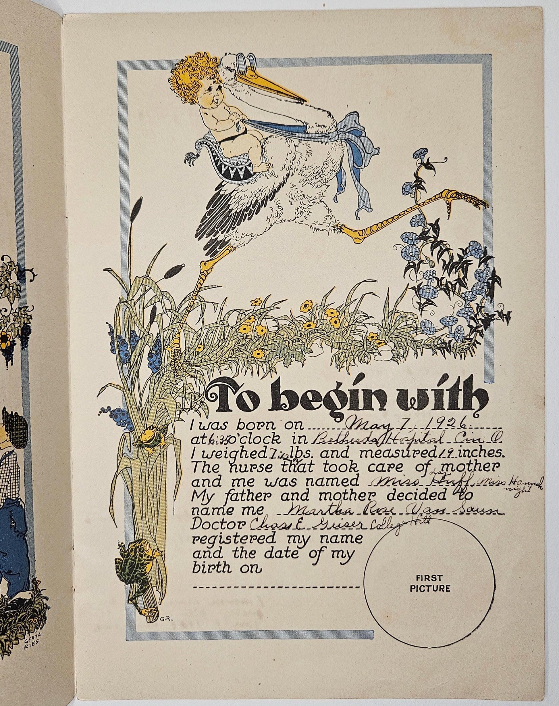Baby's Book- Metropolitan Life Insurance Company- Cincinnati Ohio 1920s - Martha's Baby Book, 1926 -Art by Gerta Ries - Children's Artwork