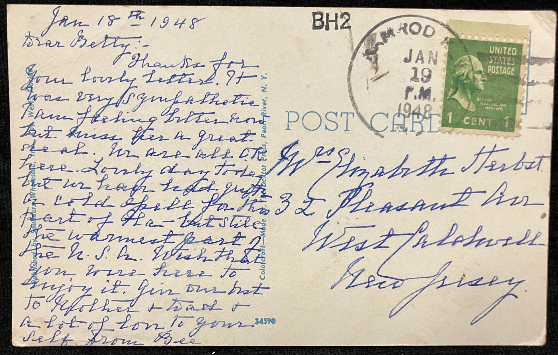 Mailed: Postmark in Jan, 1948 with a green one cent George Washington stamp