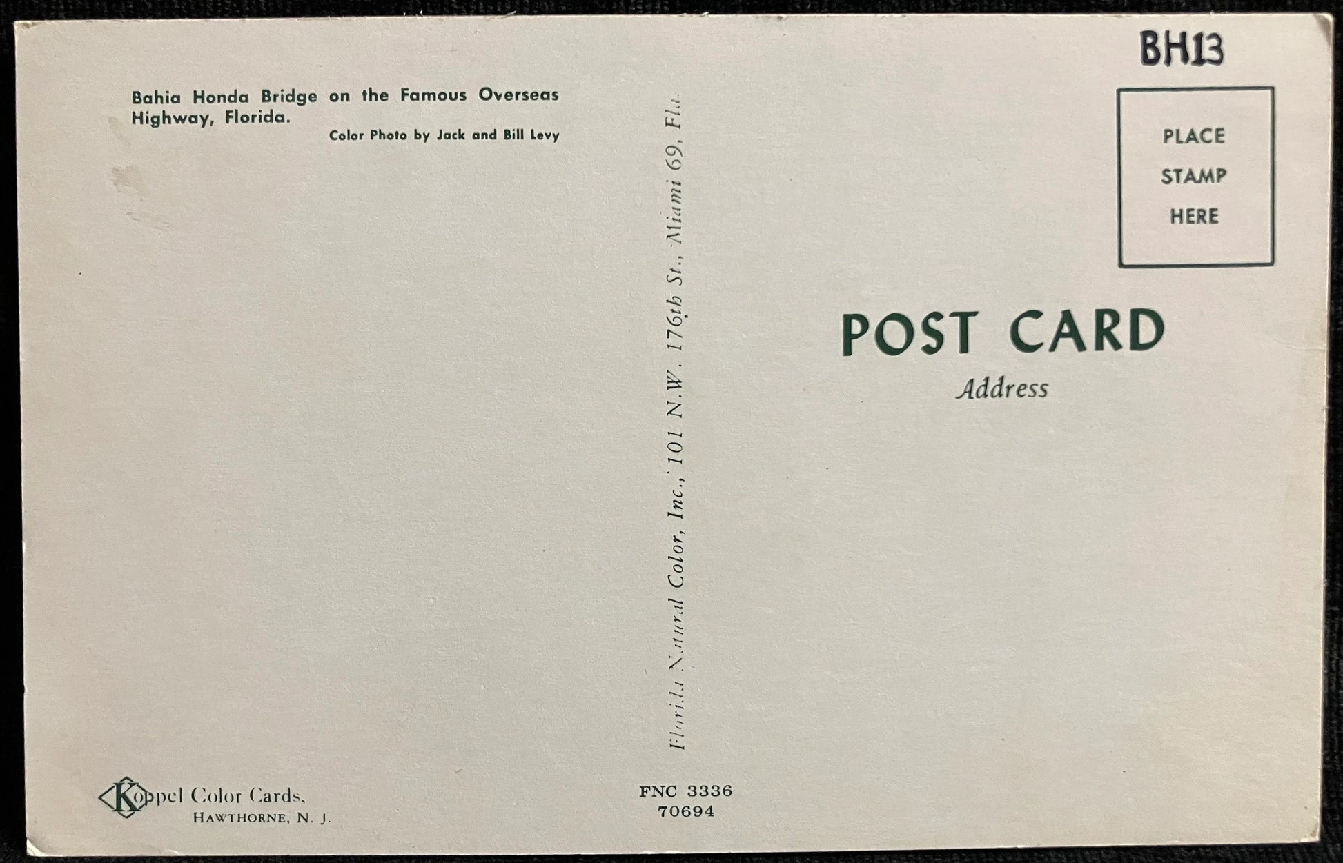 Bahia Honda Bridge - Overseas Highway - Florida - Photo: Jack and Bill Levy - Vintage Bridge Postcard