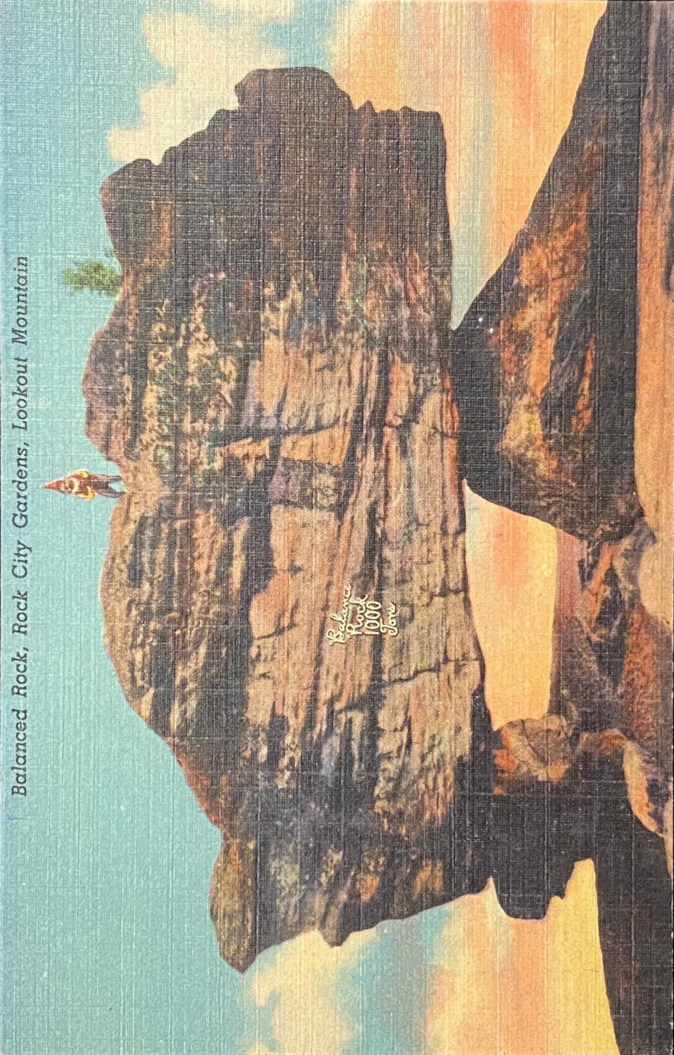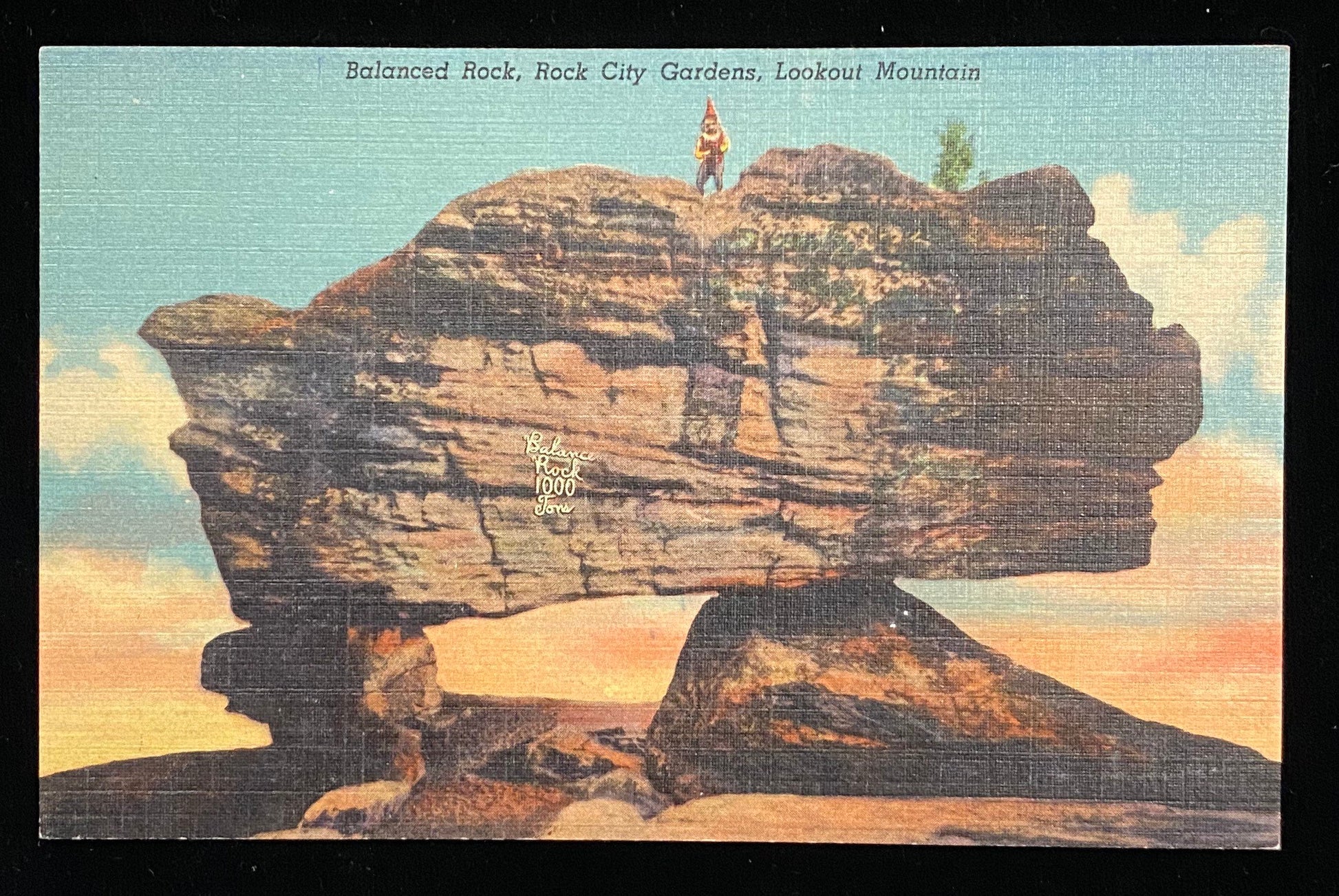 Balanced Rock, Rock City Gardens, Lookout Mountain - 1938 Linen Postcard
