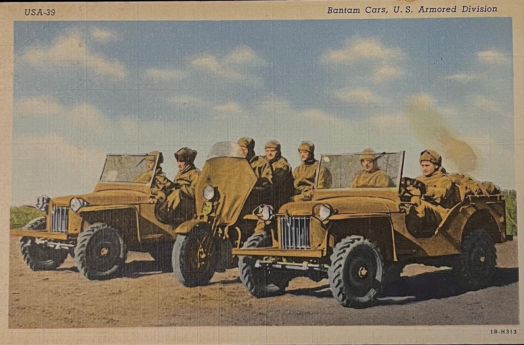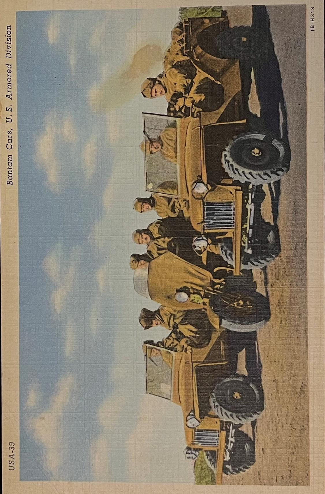 Bantam cars, U.S. Armored Division - USA-39 - Linen Postcard