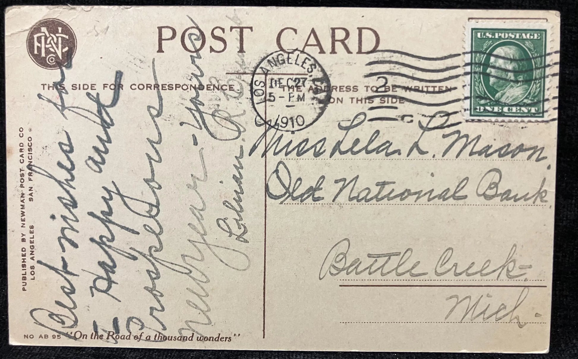 Mailed: Postmark: 1910 green one-cent Benjamin Franklin stamp