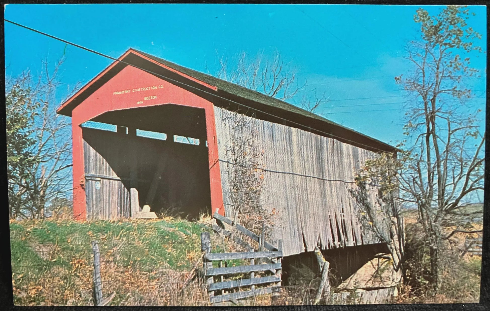 Beeson Bridge in Parke County, Indiana - Photo: Floyd Mitchell - Vintage Covered Bridge Postcard