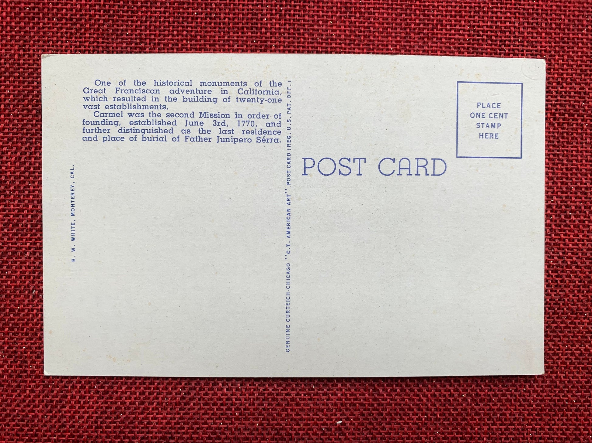 Publisher: B.W. White, Monterey, Cal., Genuine Curteich-Chicago "C.T. American Art: Post Card (Reg. U.S. Pat. Off.)