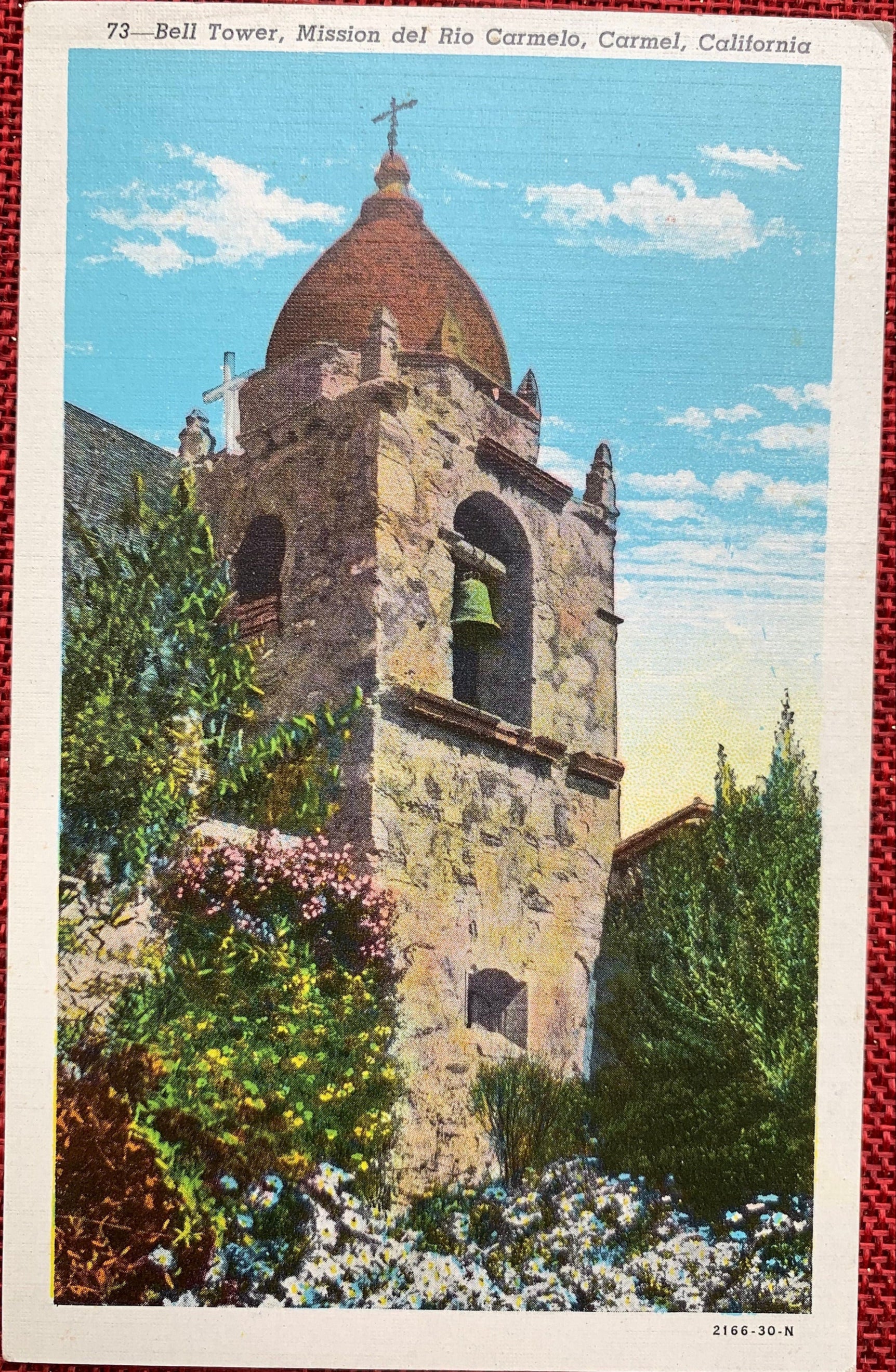 Bell Tower, Mission del Rio Carmelo - Carmel, California - 1940s Linen Postcard