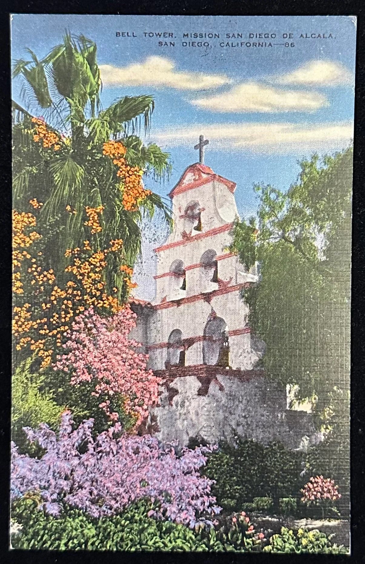Bell Tower Mission San Diego De Alcala, San Diego, California - Linen Vintage Postcard