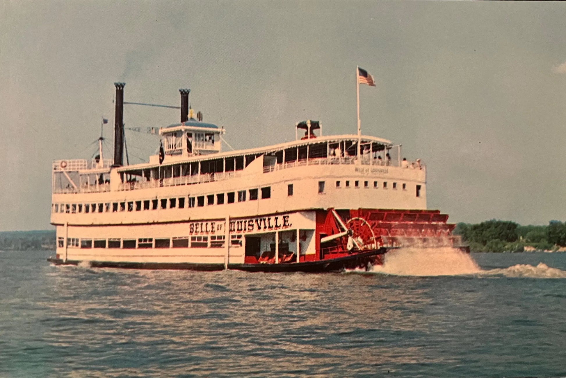 Back: BELLE OF LOUSIVILLE Ohio River, Louisville, Kentucky The Belle of Louisville, a paddle-wheel excursion boat, jointly owned by the City and the County, makes scheduled trips up and down the Ohio River.