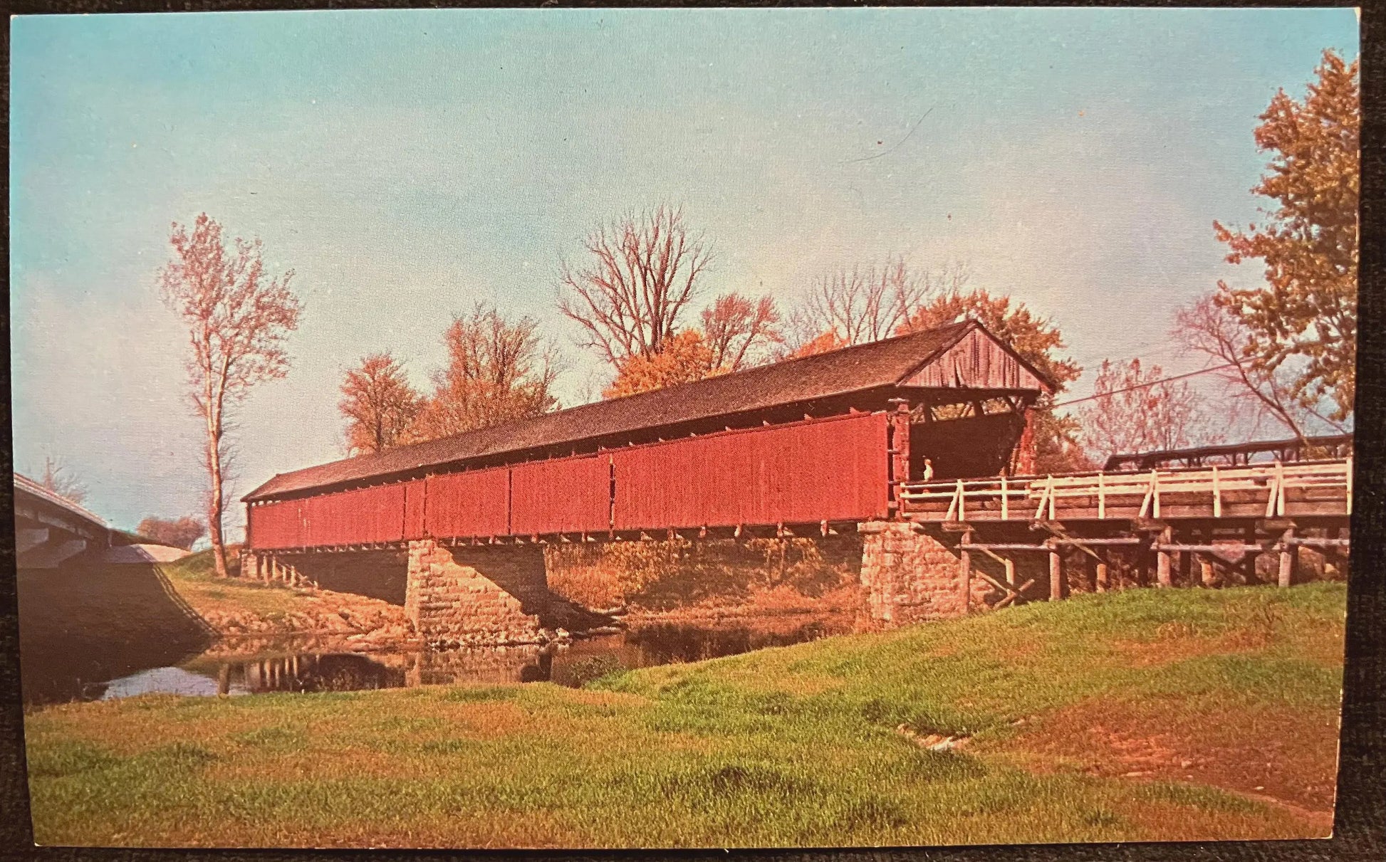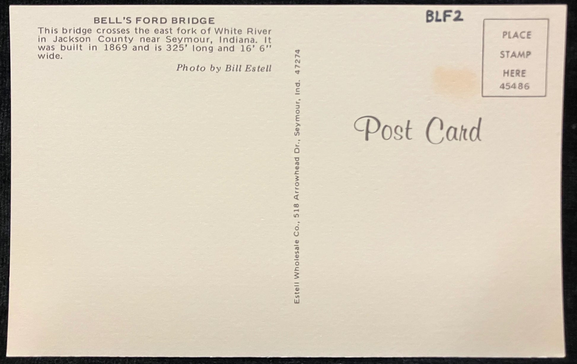 Bells' Ford Bridge in Jackson County, Indiana - Photo: Bill Estell - Vintage Covered Bridge Postcard