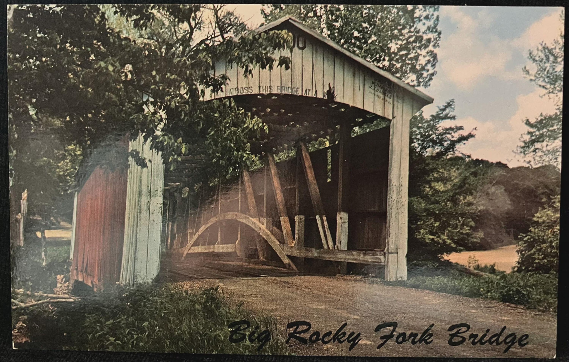 Big Rocky Fork Bridge - Near Mansfield, Indiana - Photo by John V. Pontiere Jr. - Vintage Covered Bridge Postcard