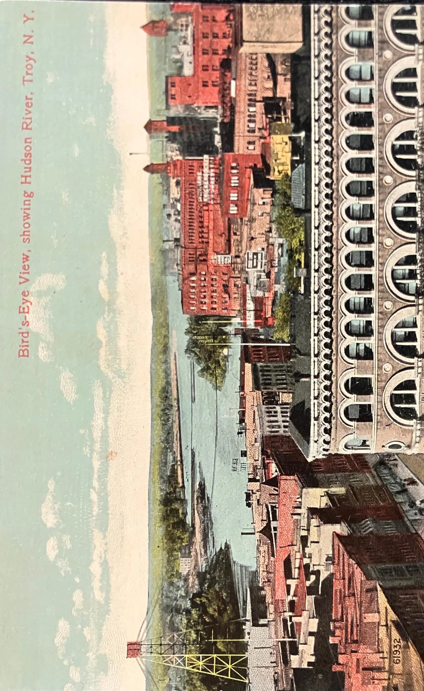 Bird's-Eye View, showing Hudson River, Troy, New York - Vintage Postcard