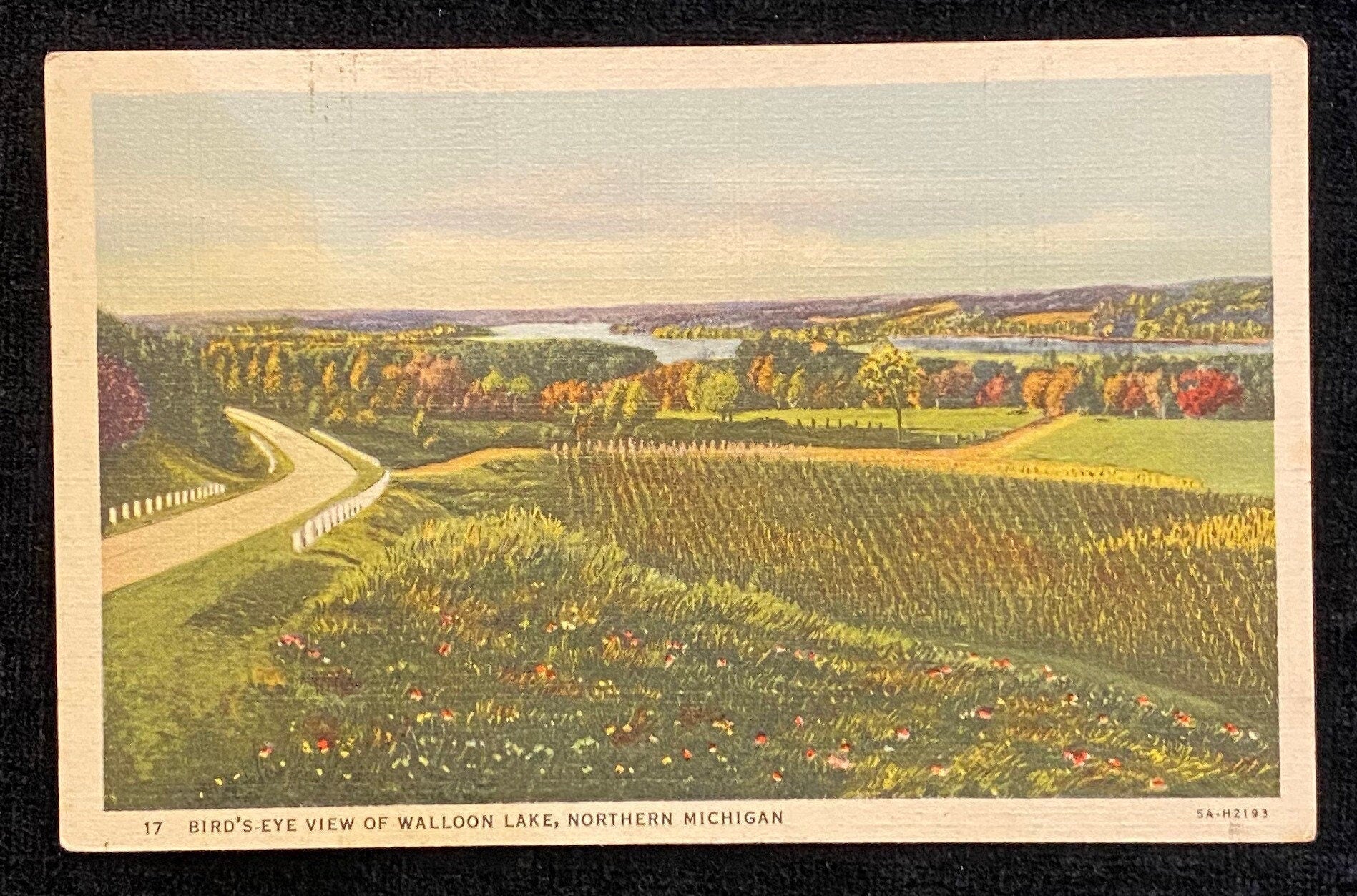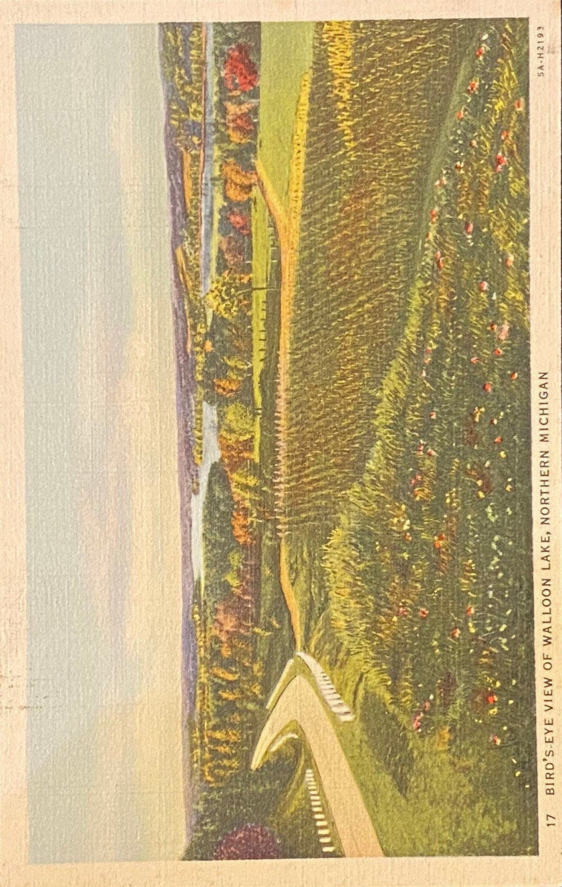 Bird's-Eye View - Walloon Lake - Petosky, Michigan - 1935 Linen Postcard