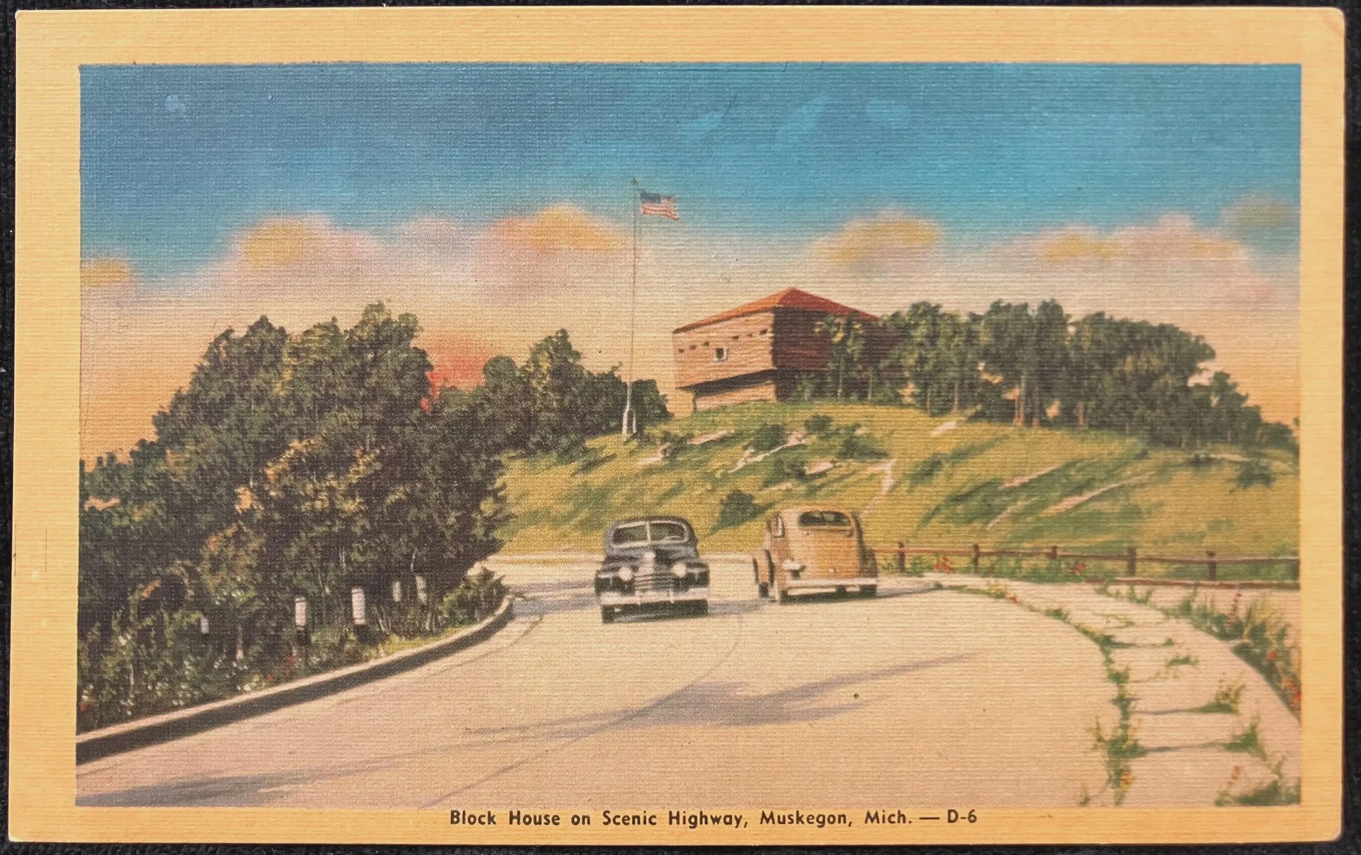 Block House on Scenic Highway, Muskegon, Michigan - Vintage Highway Postcard
