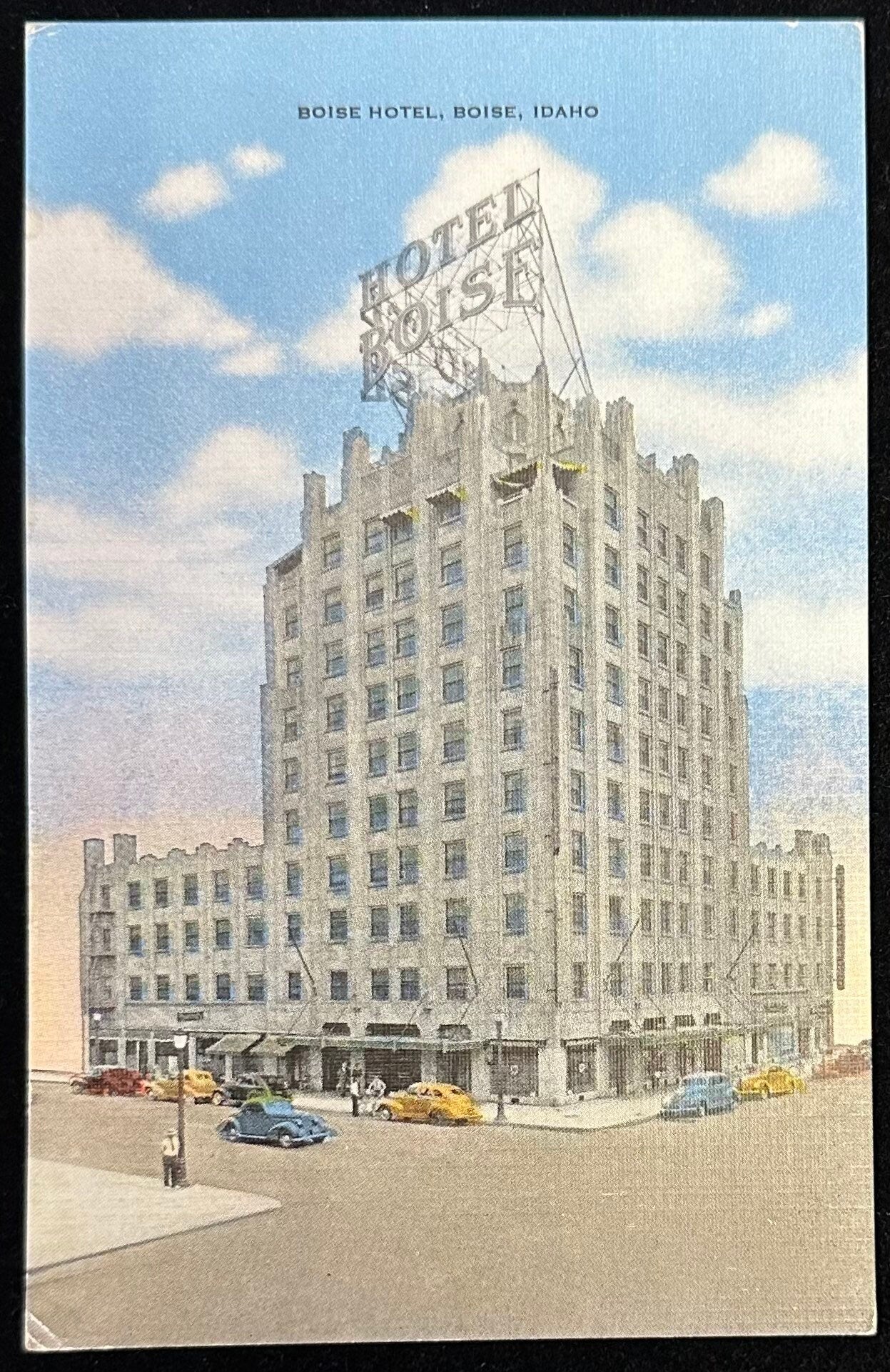 Boise Hotel, Boise, Idaho - 1930s Automobiles - Linen Vintage Postcard