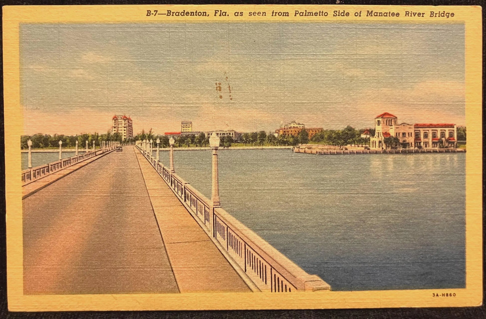 Bradenton, Florida as seen from Palmetto Side of Manatee River Bridge - Vintage Postcard