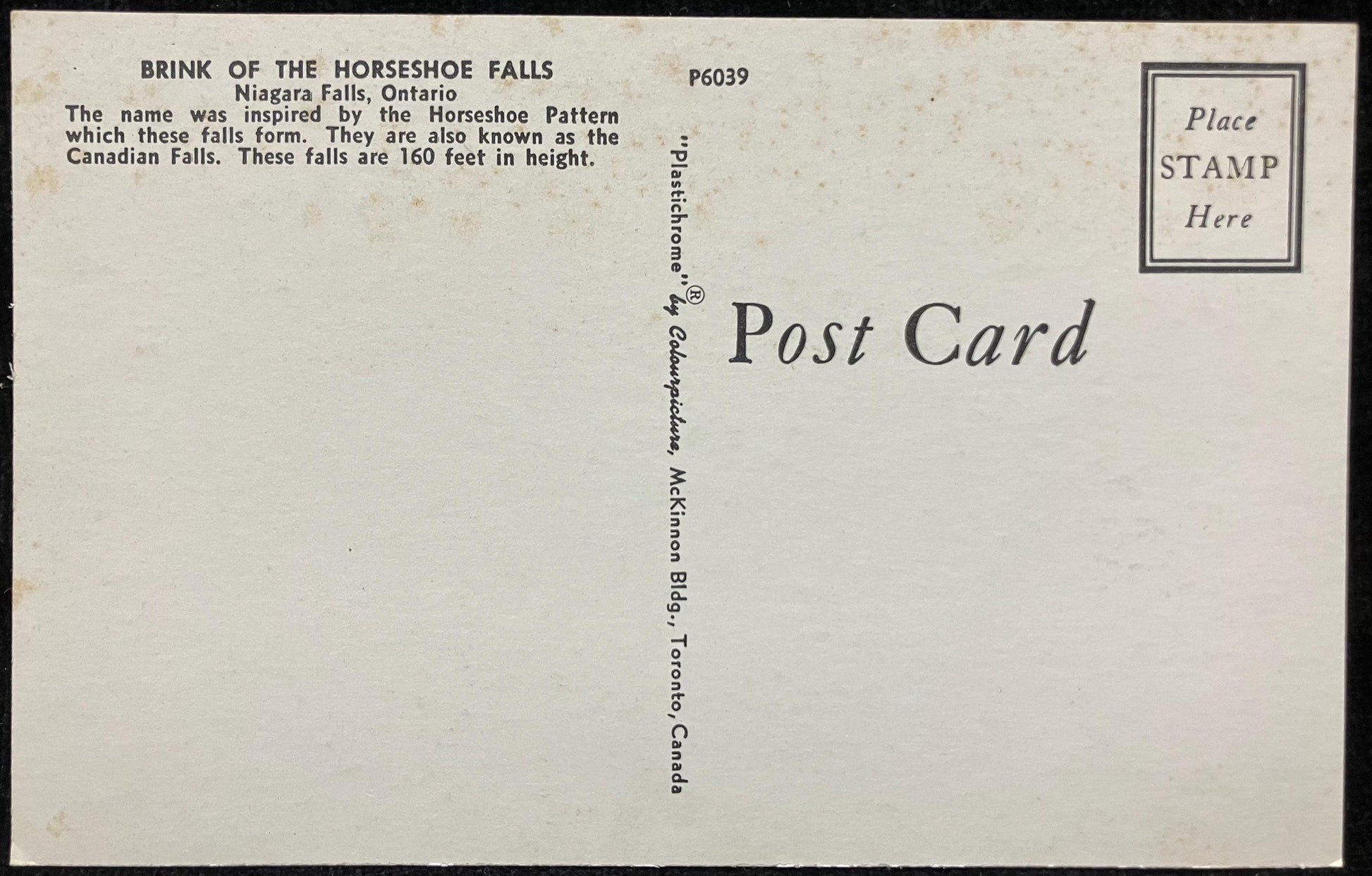 Brink of the Horseshoe Falls - Niagara Falls, Canada. - Printed in Canada - Vintage Waterfall Postcard