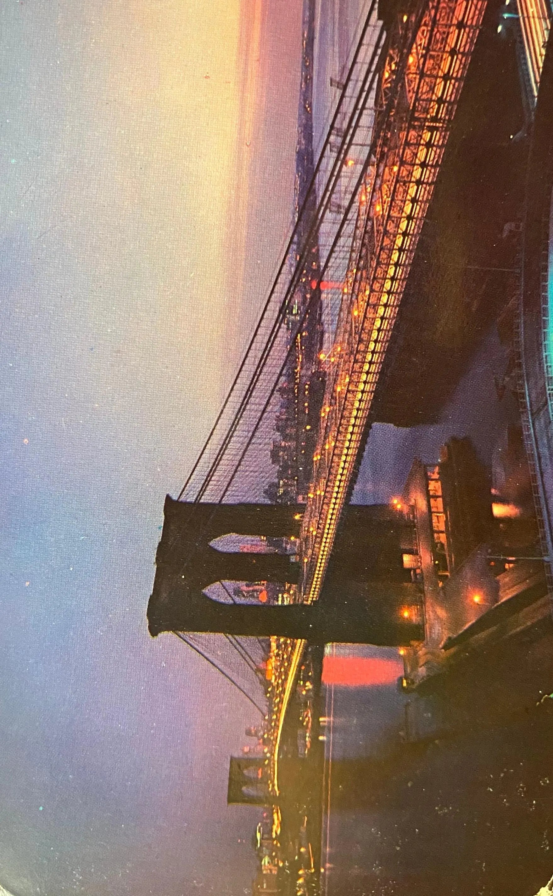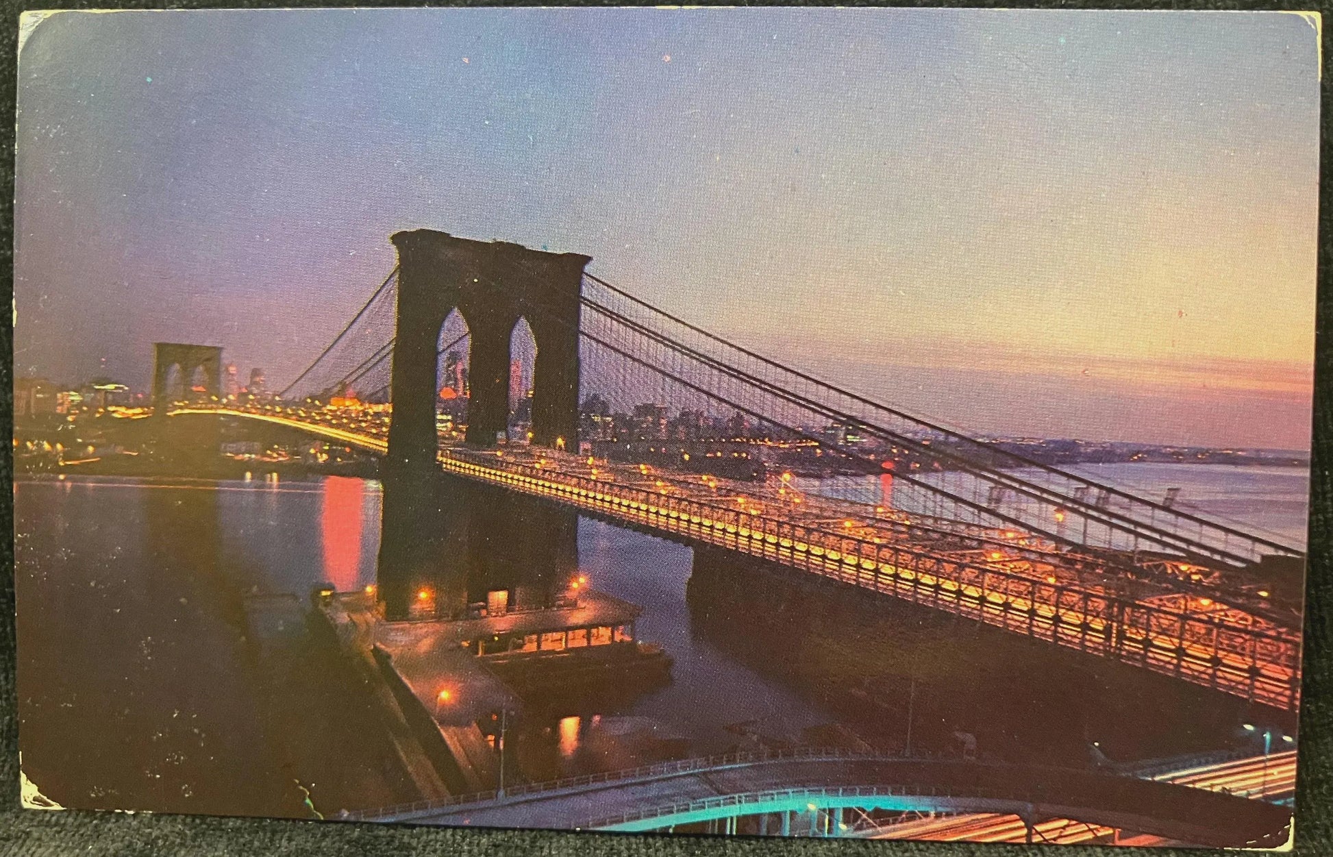 Brooklyn Bridge at Night - New York - Vintage 1970s NYC Postcard