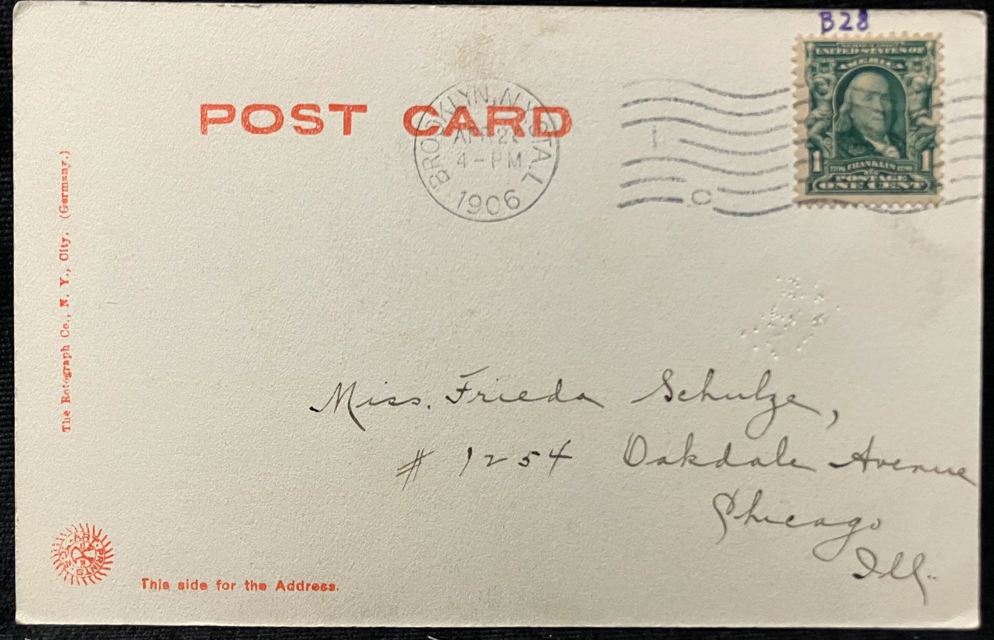 Mailed: Postmark on April 26, 1906 from Brooklyn, New York
