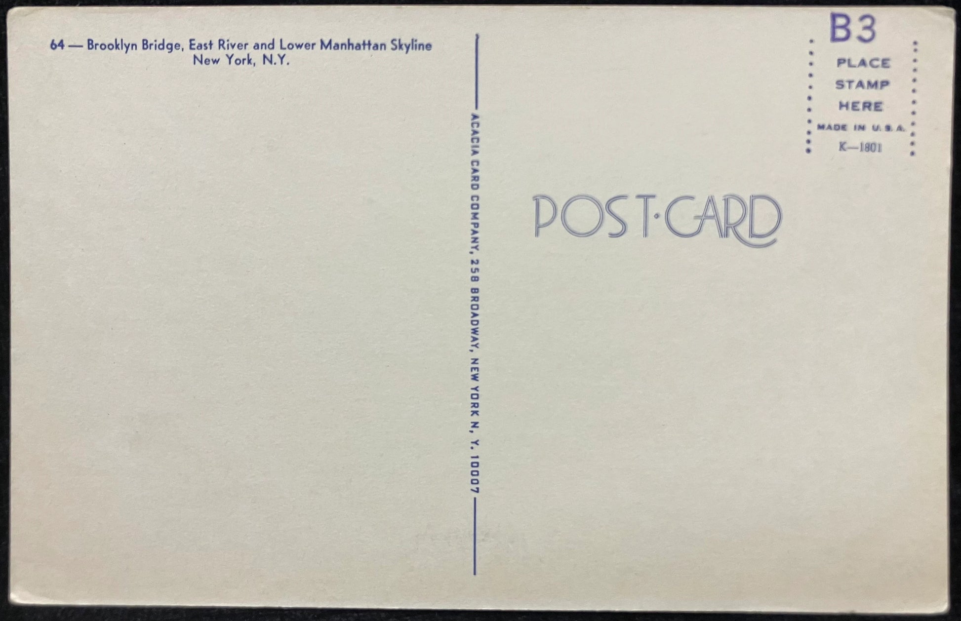 Back: Brooklyn Bridge, East River and Lower Manhattan Skyline - New York, N. Y.