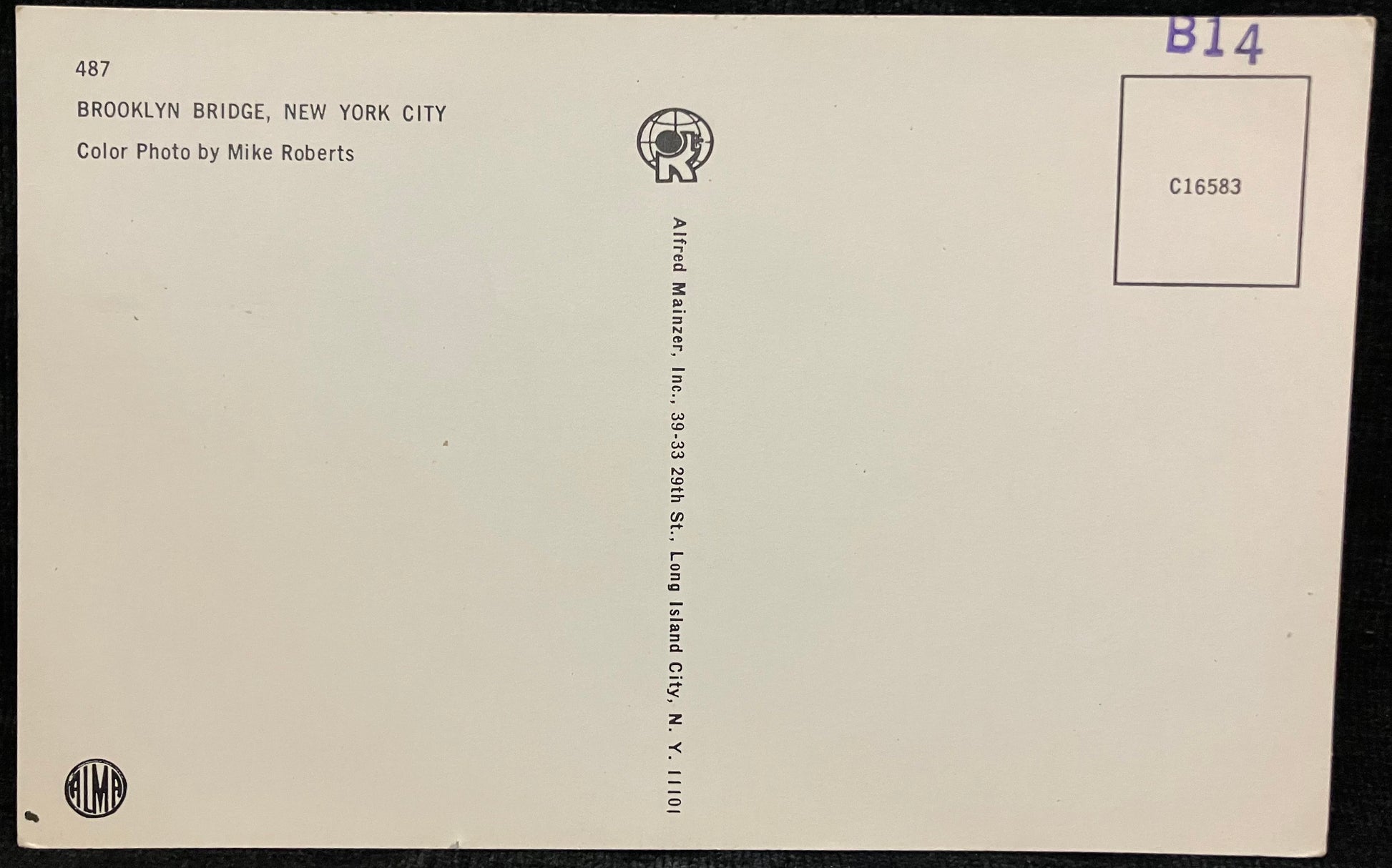 Brooklyn Bridge in New York City - Photo: Mike Roberts - Vintage Bridge Postcard
