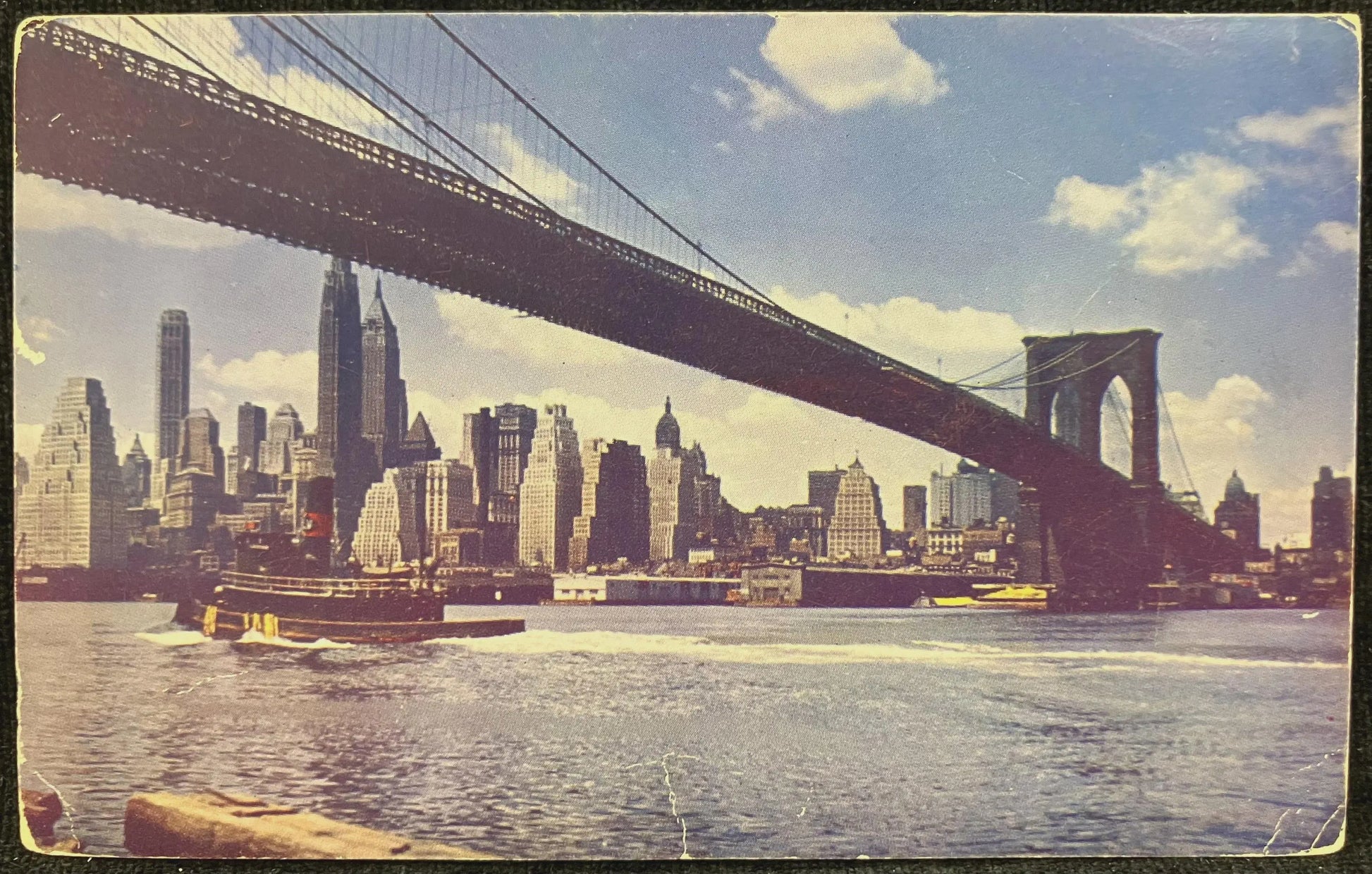 Brooklyn Bridge, New York City - Vintage Kodachrome Bridge Postcard