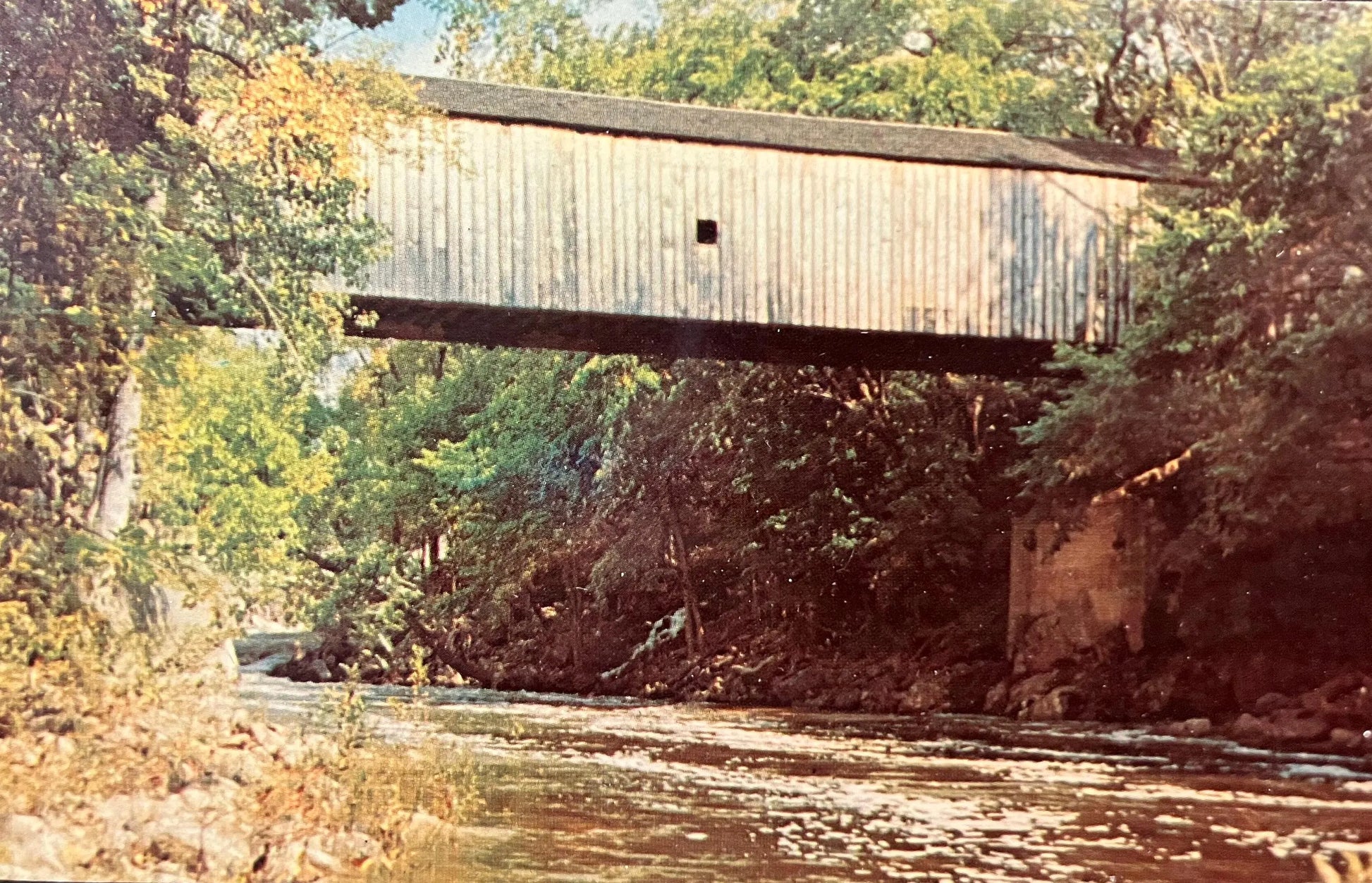 Bull’s Bridge, over the Housatonic River in Connecticut - Photo by Ray Mainwaring - Vintage Covered Bridge Postcard